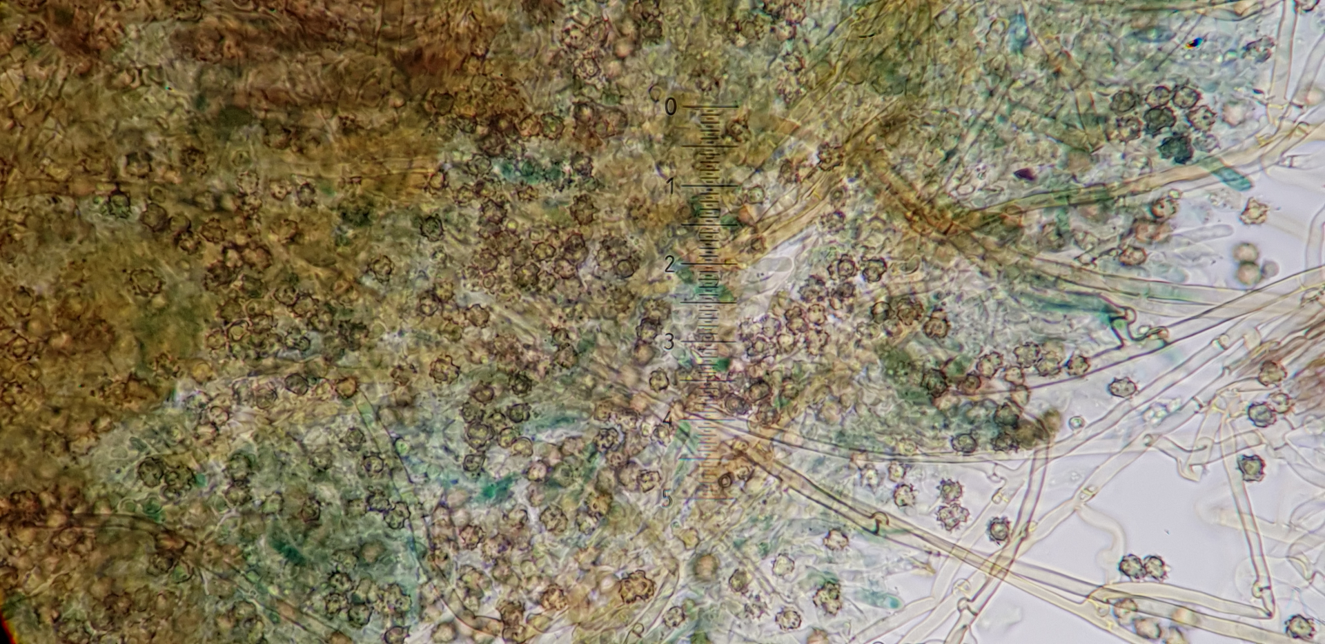Mikroskopisch konnte man die Blaue reaktion auf 3 prozentiger KOH.