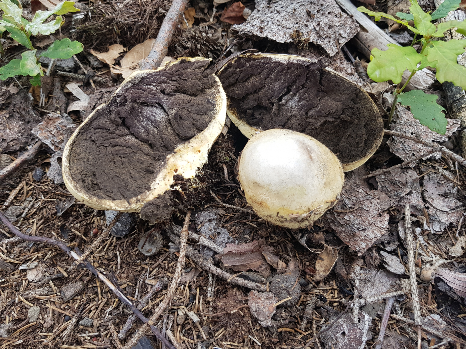 Auf dem Weg zurück fand diesen Bovisten. Ich überlegte lange, ob es nicht Steine seien, bevor ich zu ihnen gegangen bin.