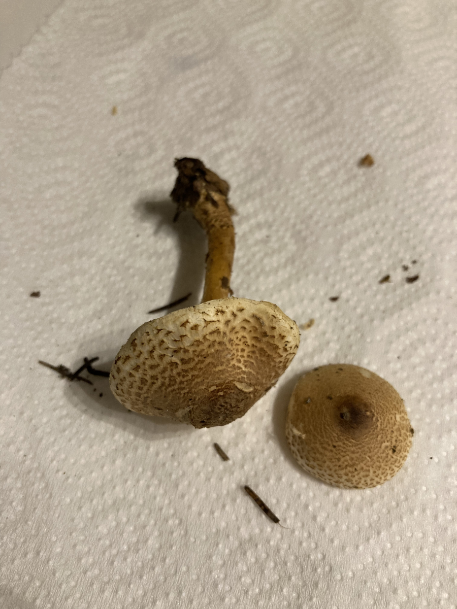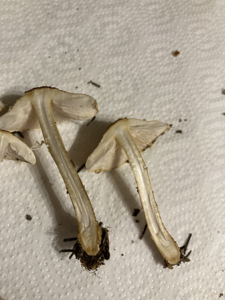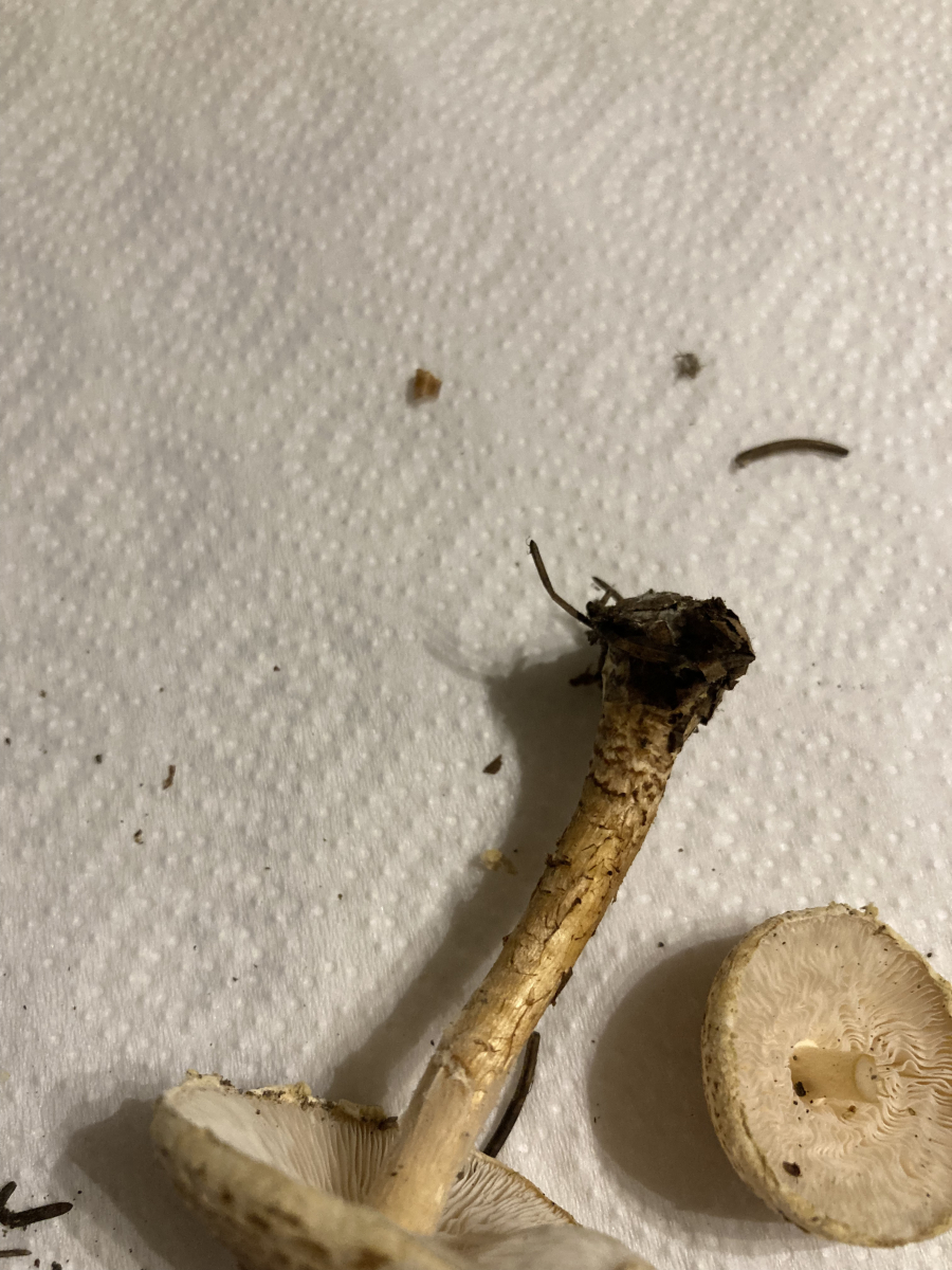 Aber noch ein ganz anderes Problem: diese bei Kunstlicht gemachten Aufnahmen verfälschen die vorhandenen Farben des Pilzes. Z. B. kann man hier nicht einschätzen, ob der Pilz im Wesentlichen gelb, orange, braun oder vielleicht rosa ist. Wenn man nicht einmal das weiß, kommt man nicht weiter, als dass es wohl ein Schirmling ist. Mache bei Bestimmungsanfragen also künftig Aufnahmen bei Tageslicht, das wird das Auskunftsergebnis enorm verbessern.