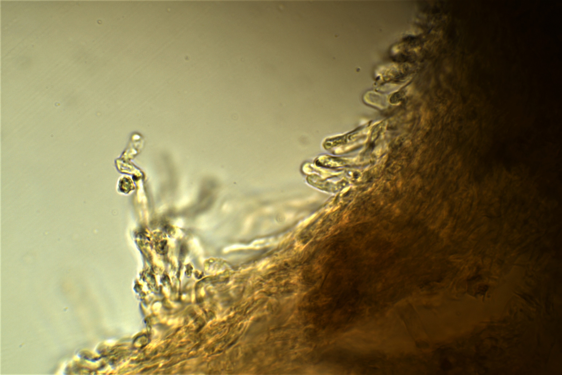 Anbei ein paar Mikroaufnahmen von meiner Probe. Ich finde die Spitzen der Warzen zu beurteilen ist überhaupt nicht so einfach. In Pilze der Schweiz Band 2 konnte man nach geschlagen das die Hyphen in der HDS und im Hymenium auch Unterschiede aufweisen. Den Schlüssel werde ich morgen ausdrucken und mir alles genau anschauen. Hydnellum concrescens könnte schon gut passen, mal sehen morgen beim Schlüsseln.