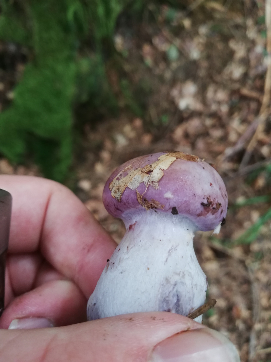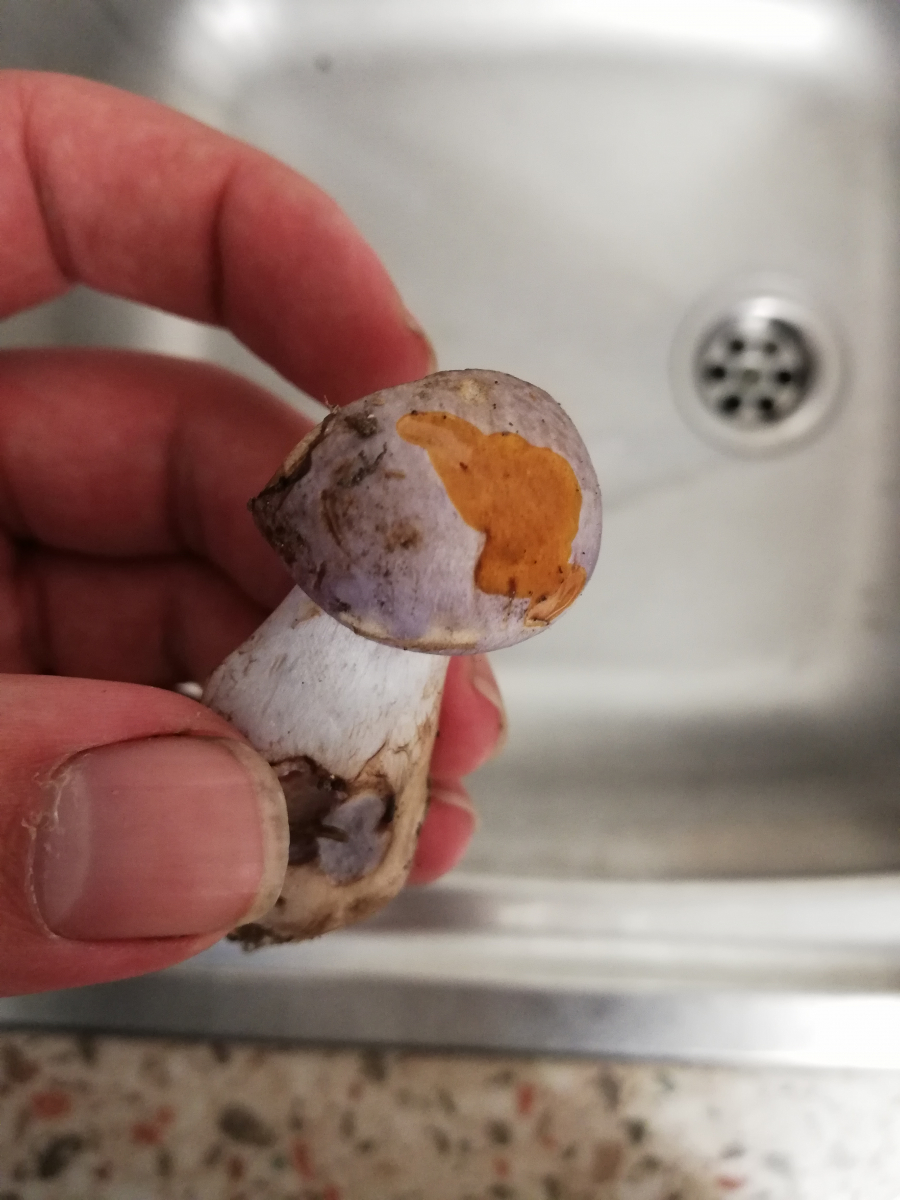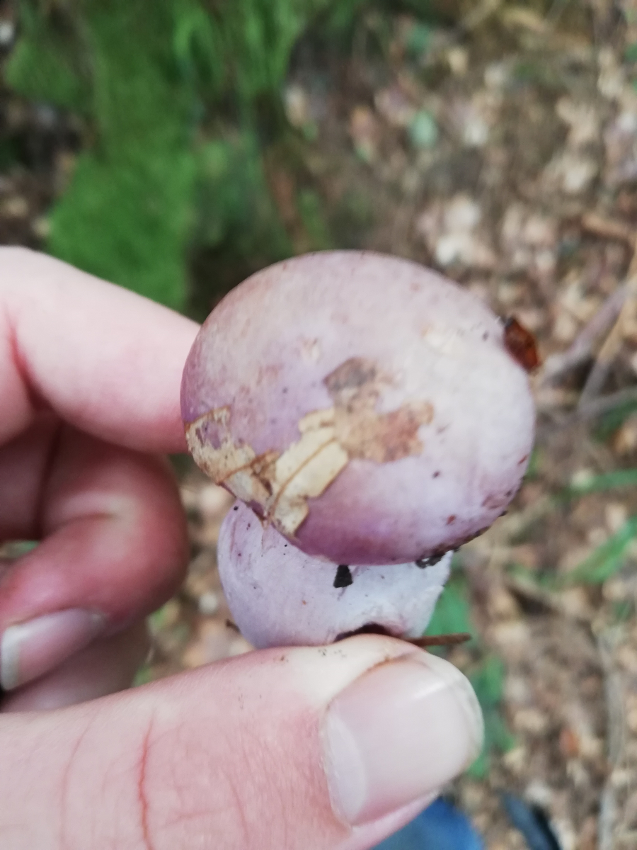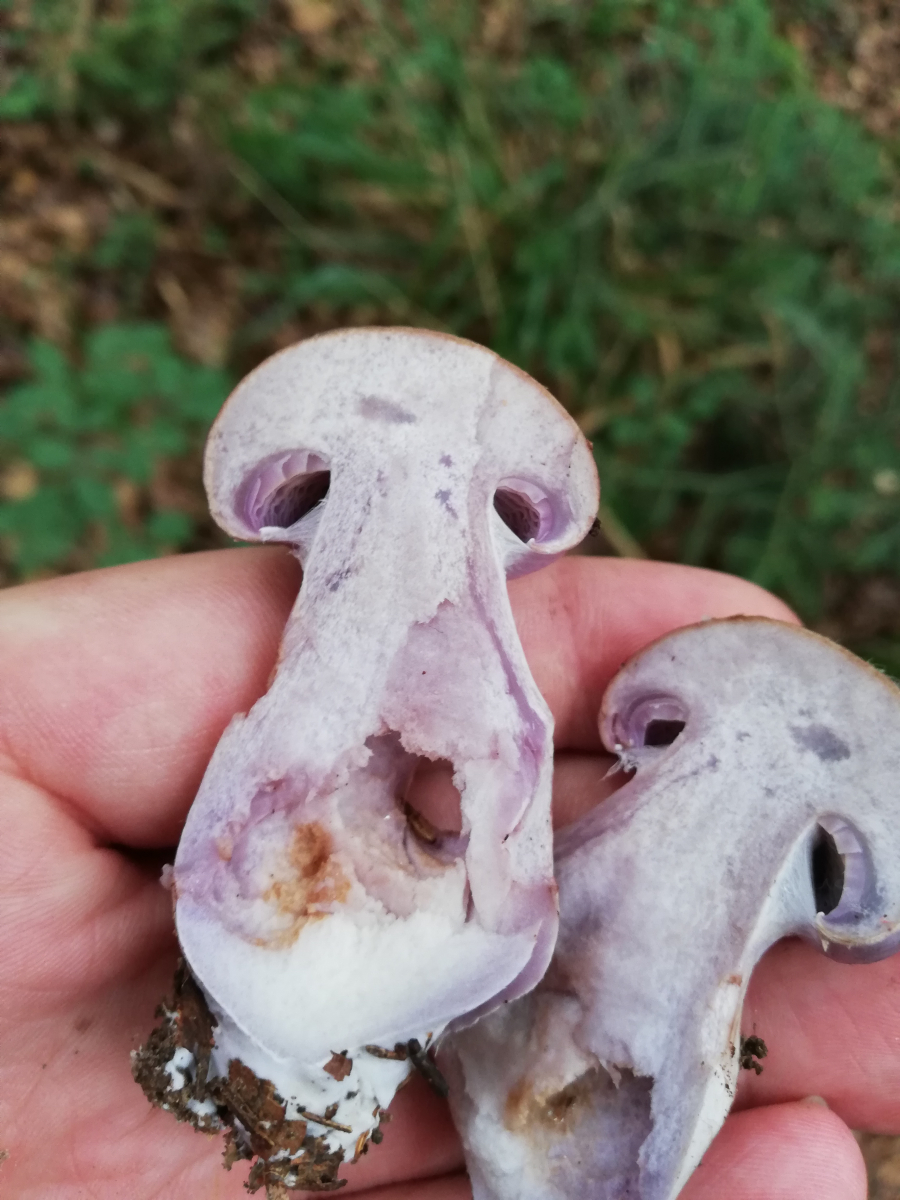 Also in meinen Augen war bei dieser Anfrage das Hauptproblem, dass du in dem auffallend üblen Gestank des pilzes einen "angenehm pilzigen" Geruch wahrgenommen haben wolltest. Meiner Erfahrung nach gibt es keinen anderen pilz mit diesem stinkigen Geruch, sodass man ihn mit verbundenen Augen erkennen würde. Eigentlich verbietet sich mMn die Diagnose bocksdickfuss, wenn von angenehmem Geruch die Rede ist. Daher war meine erste Idee nicht der bocksdickfuss, sondern cortinarius purpurascens.