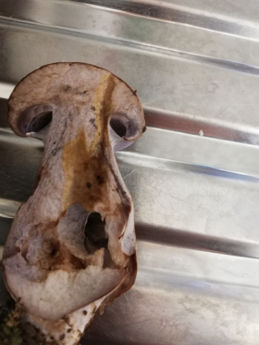 Punkt geht an Werner Edelmann das Fleisch verfärbt sich mit KOH deutlich gelblich, die Huthaut orange. Erdig riecht er für mich allerdings immer noch nicht stark, gehört er trotzdem in die Cortinarius variecolores Gruppe?