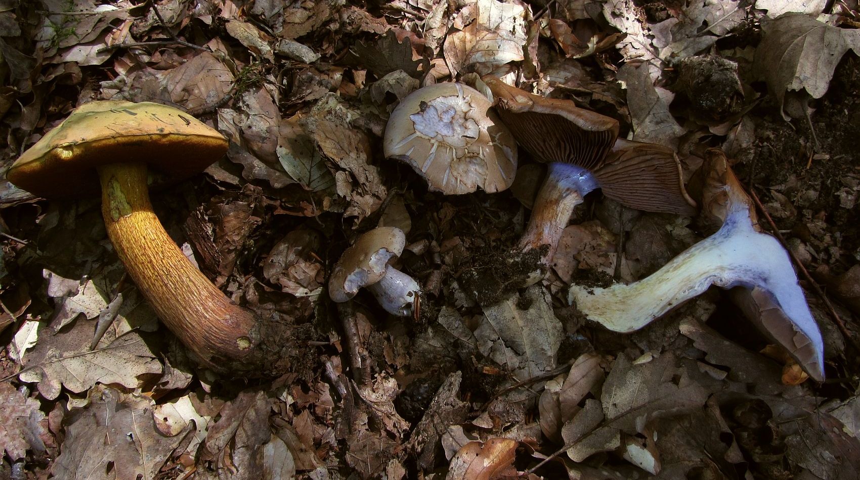 Strubbelköpfe (Strobilomyces strobilaceus) auch in größeren Trupps:
