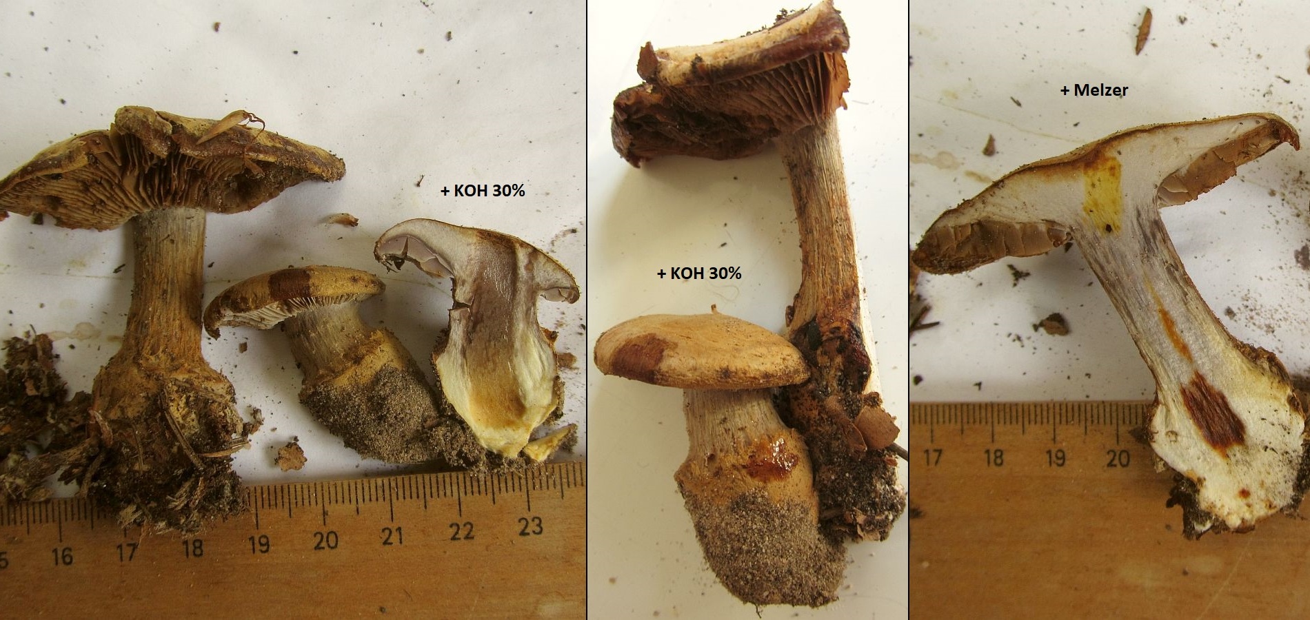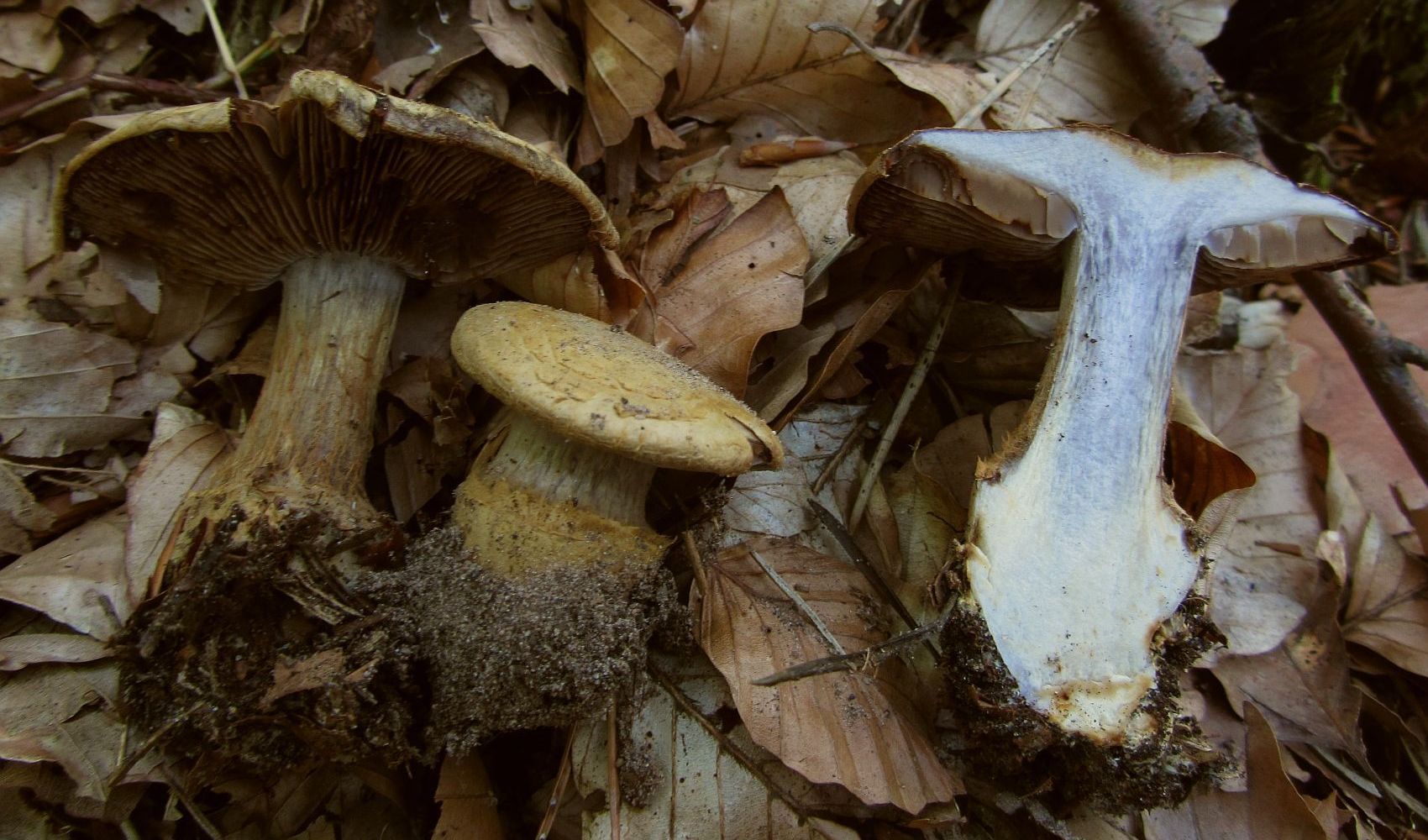 Den anderen würde ich mal für Cortinarius luhmannii halten, auch wenn der Fundort komisch ist (eigentlich kein kalkhaltiger Boden):