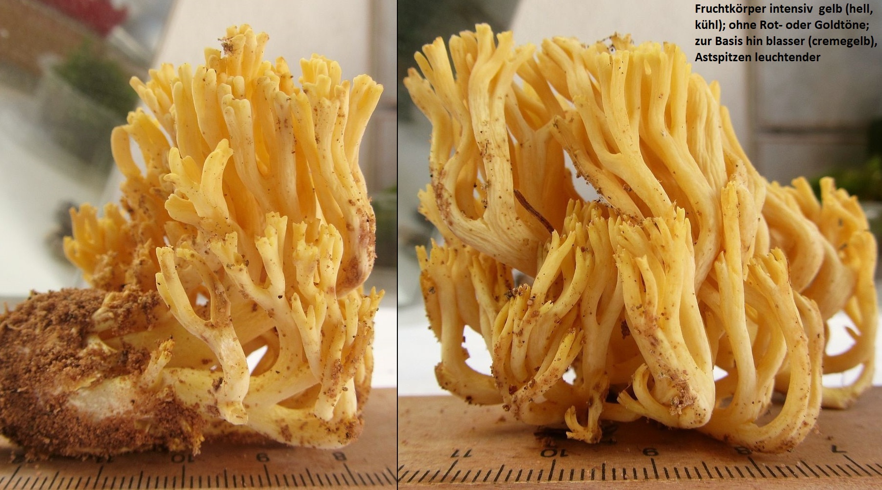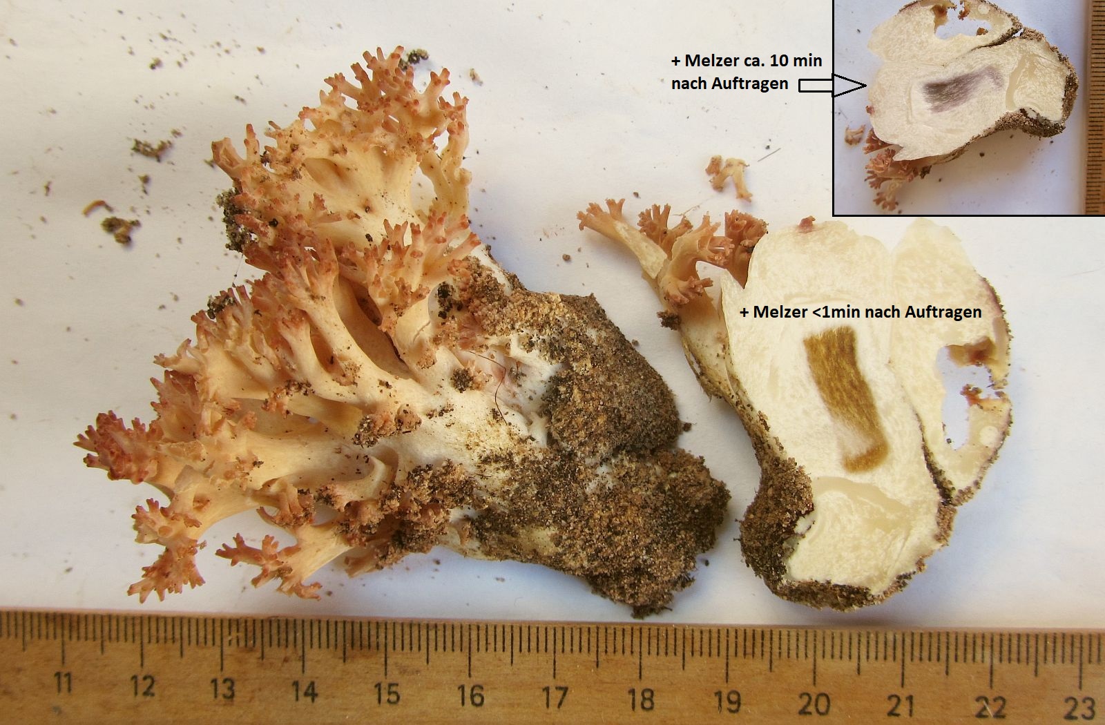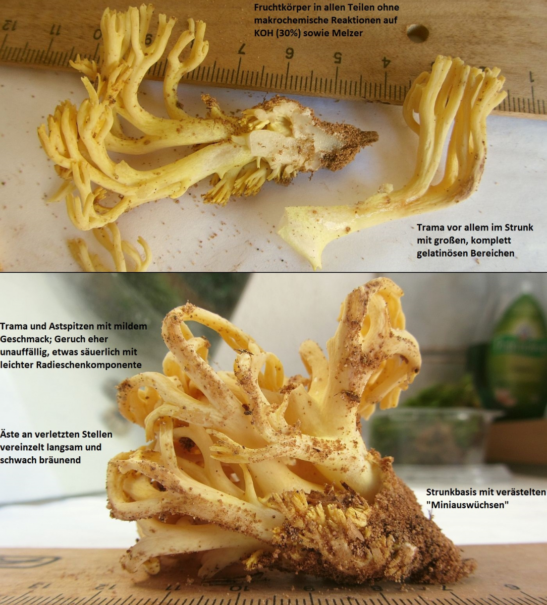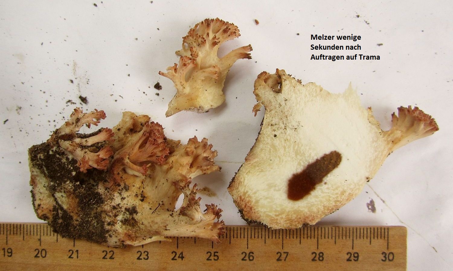Ramaria rubripermanens = "Kleinsporiger Hahnenkamm", konnte an zwei veschiedenen Stellen beobachtet werden:
