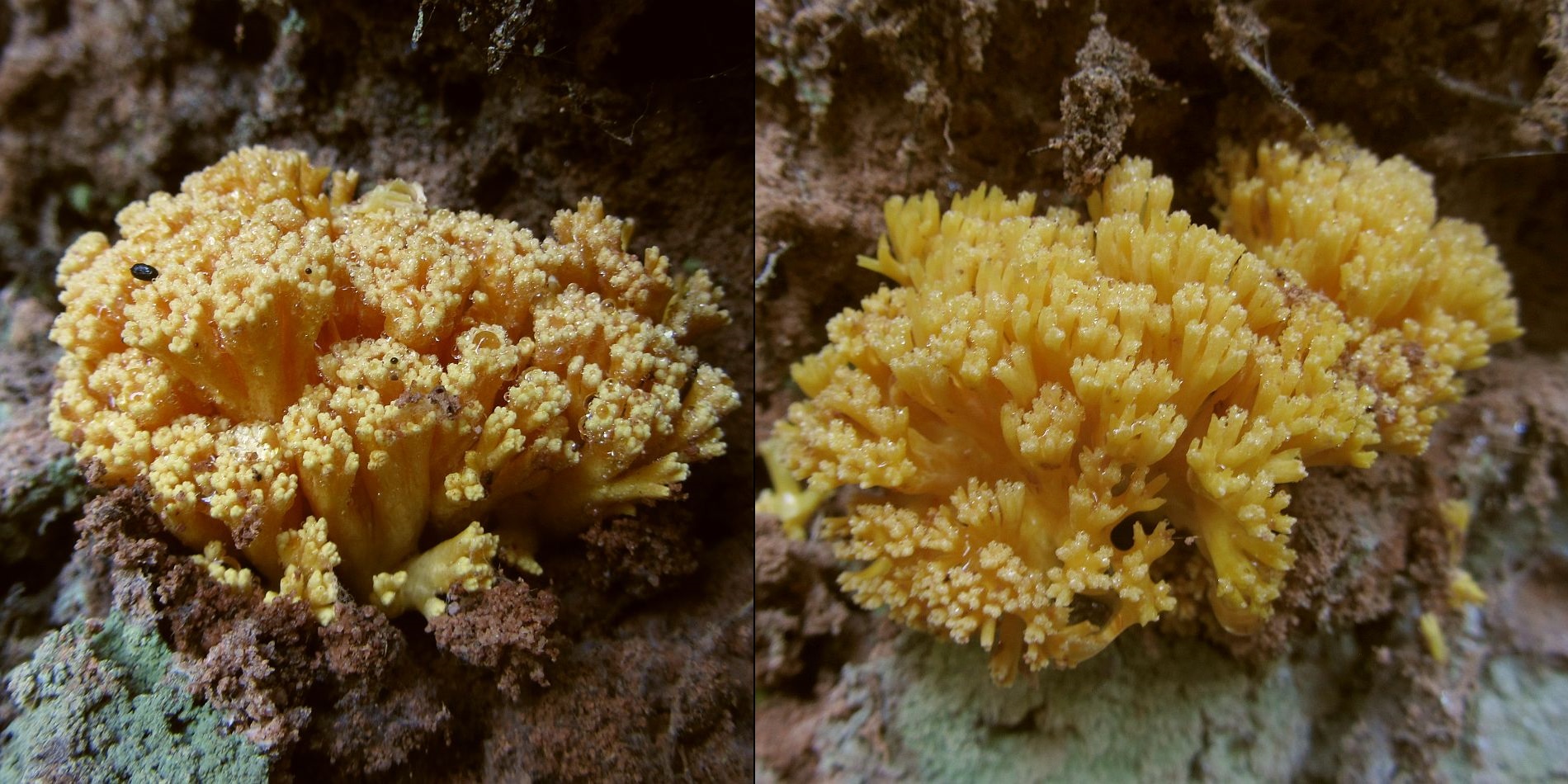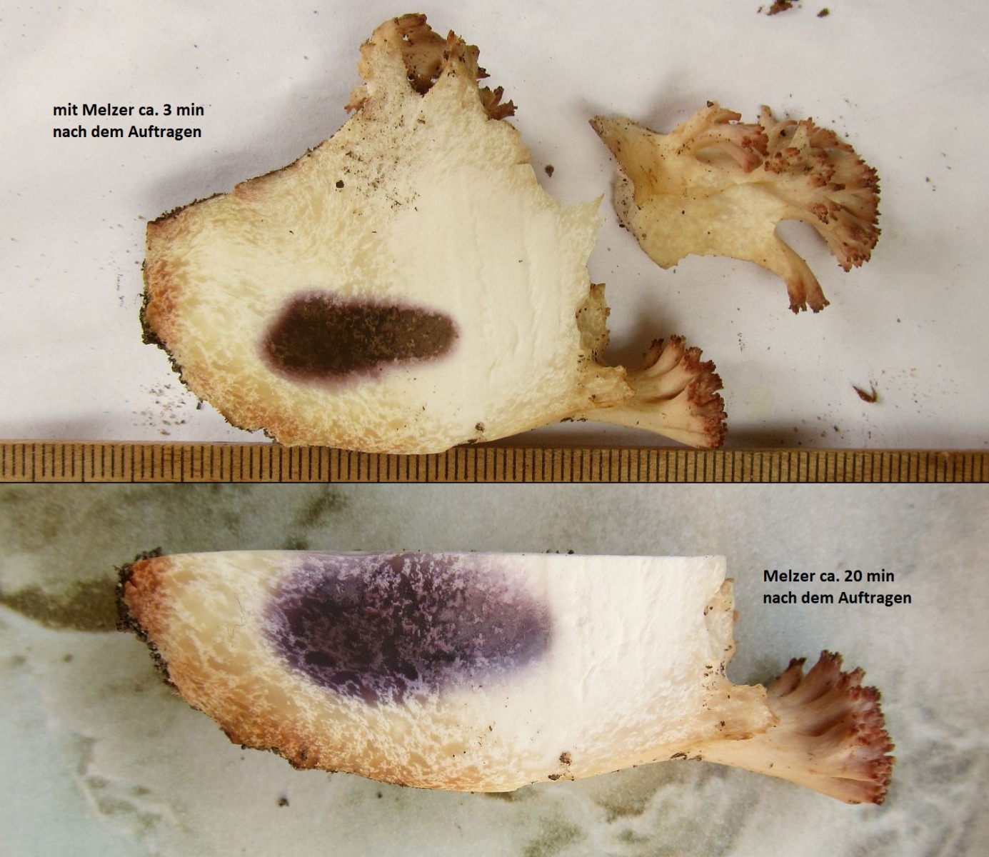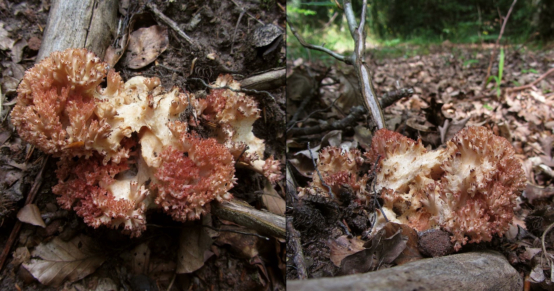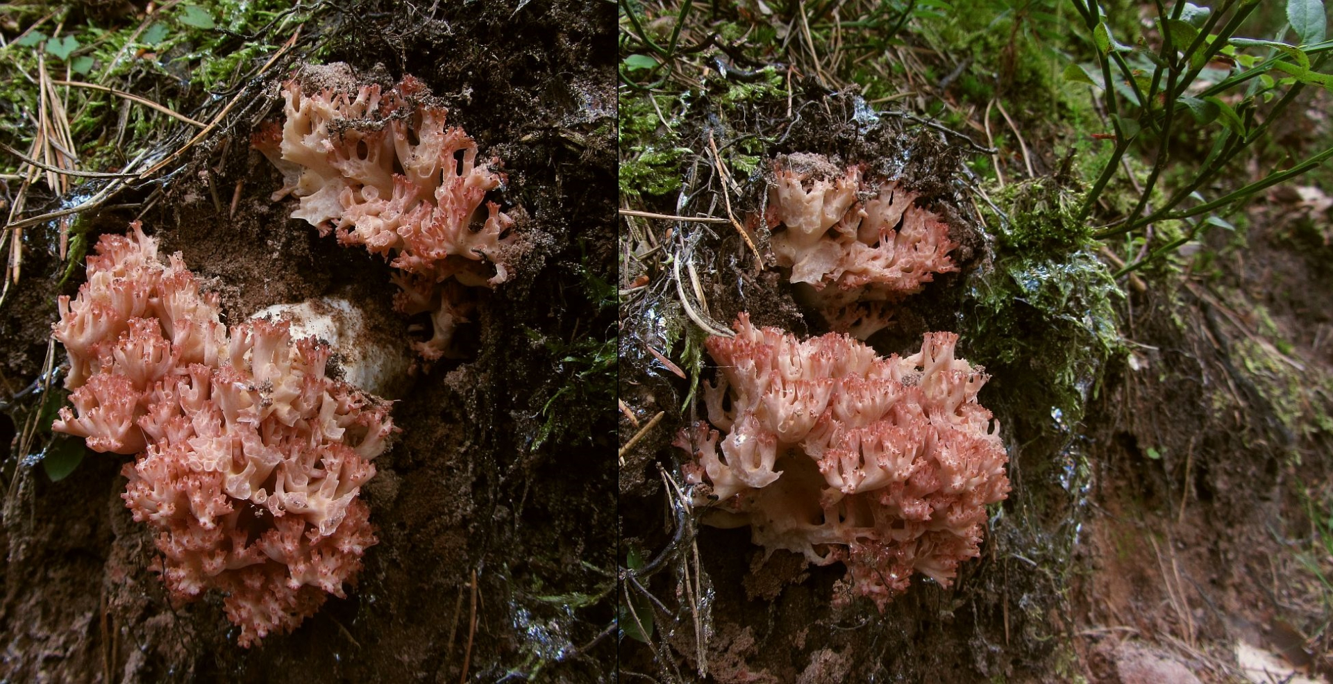 Ramaria rubripermanens = "Kleinsporiger Hahnenkamm", konnte an zwei veschiedenen Stellen beobachtet werden: