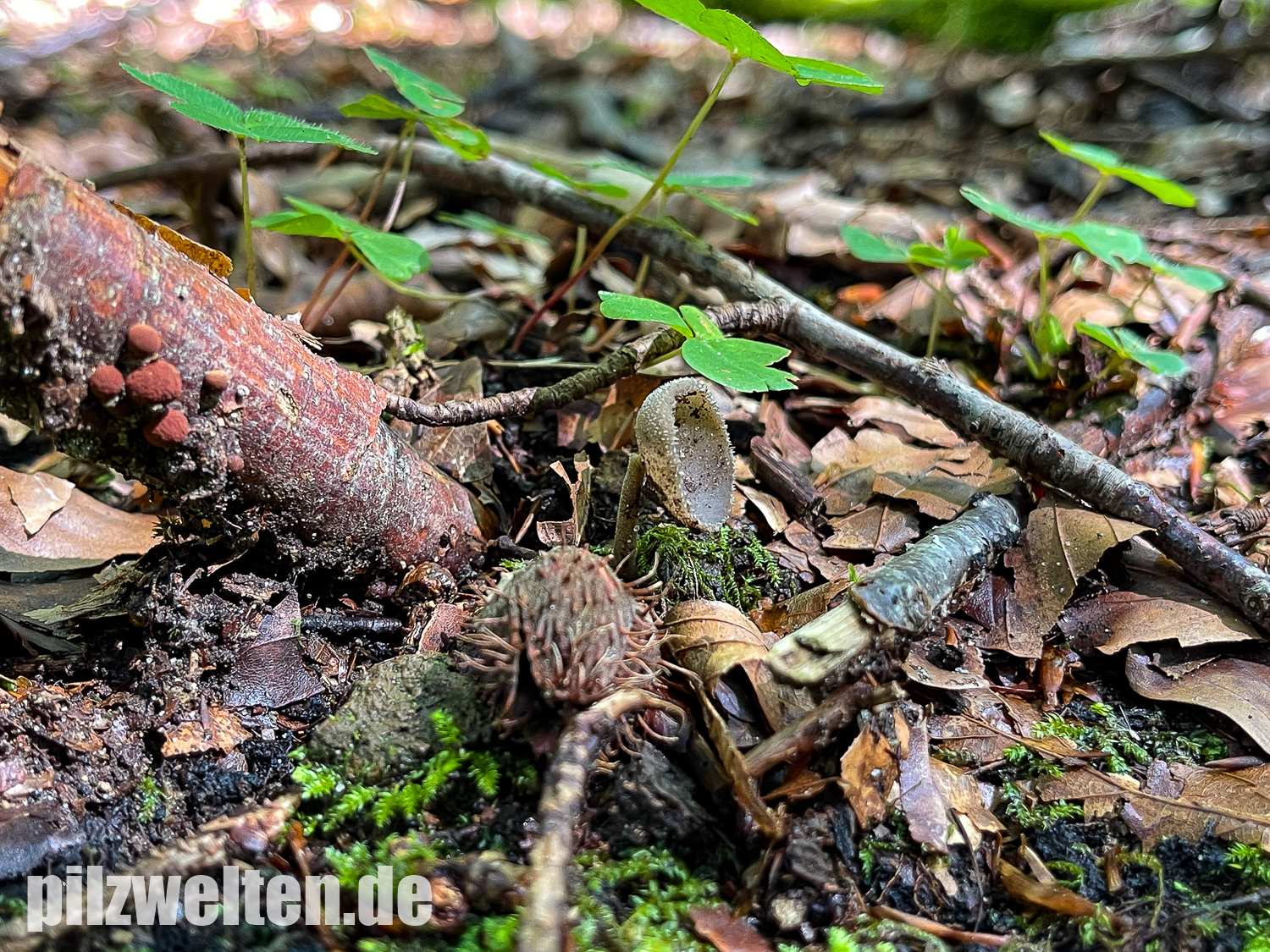Dieser Fund aus dem Video ist zwar nicht mikroskopisch bestätigt, aber wir gehen davon aus, dass es sich bei den beiden Lorcheln ziemlich sicher auch um Helvella macropus handelt, da der Fund aus dem gleichen Wald und sogar dem gleichen Waldabschnitt stammt, wie die folgenden Funde vom 07.08.2021: