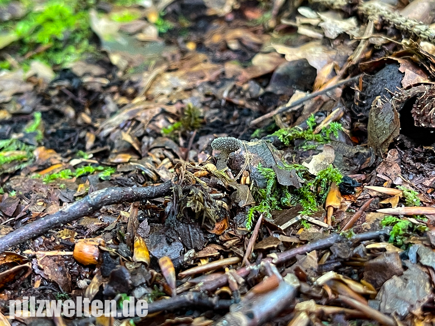Die Lorcheln sind zwar farblich extrem gut an den Untergrund angepasst und relativ klein, aber dennoch konnten wir zahlreiche Fruchtkörper entdecken. Zwei Fruchtkörper haben wir entnommen und an einen Pilzsachverständigen der AMIS (Arbeitsgruppe Mykologie Inn/Salzach) versendet, der uns den Fund freundlicherweise mikroskopisch bestätigt hat. Wir hatten in den letzten Jahren in dem Wald zwar immer wieder Einzelfunde in diese Richtung, aber nie so zahlreiche Fruchtkörper auf einmal. Insgesamt scheint die Art bei uns in Oberbayern also ein sehr, sehr gutes Jahr zu haben.