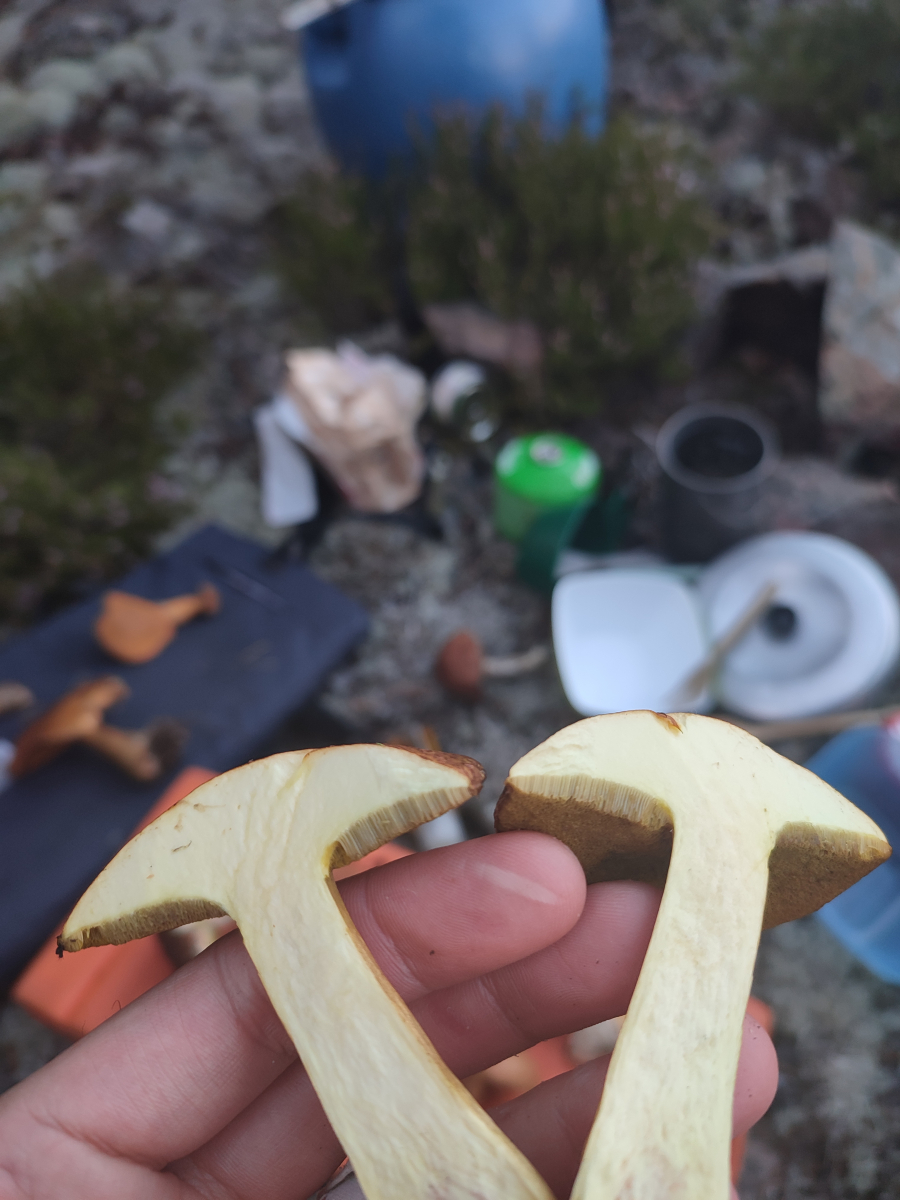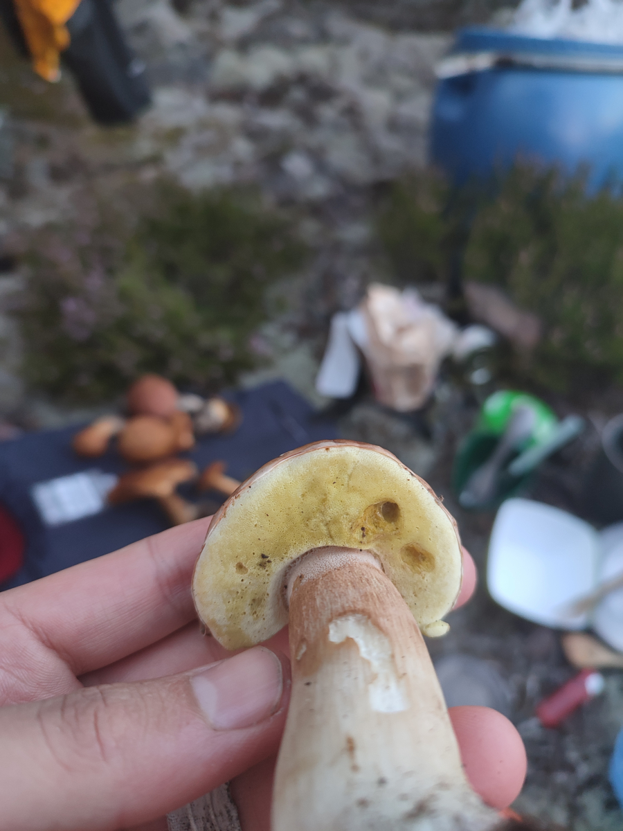 ich bin gerade in Schweden unterwegs. Und hier wachsen sie viele Röhrlinge. Ich vermute einen Boletus Edulis (gealtert), einen Sandröhrling, einen Birkenröhrling und einen Kuh Röhrling? Jemand mehr Ideen?