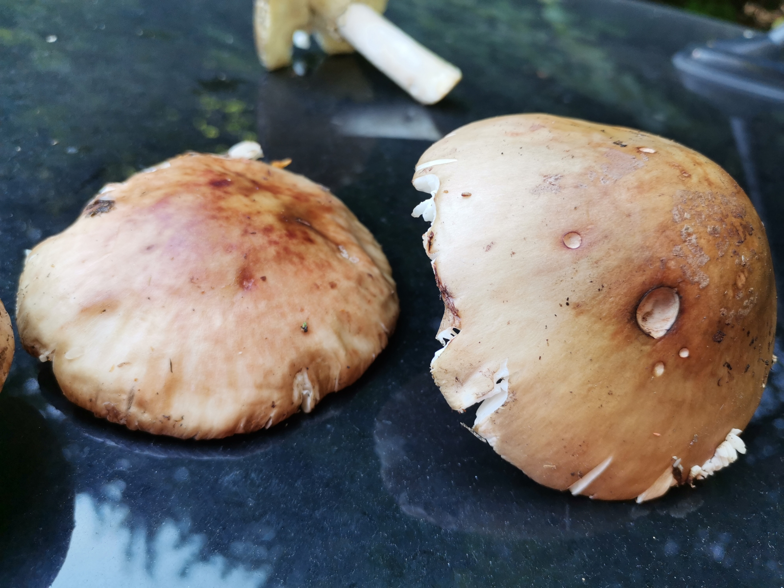 Amanita rubescens und die zweite meine ich das um Albatrellus conflues gehet , auch junge Meripilus giganteus kann so schauen aber per oberfläche ( Hut ) meine das um A. confluens gehet . Wo hast du diese Pilz gefunden ? höhere lage ?