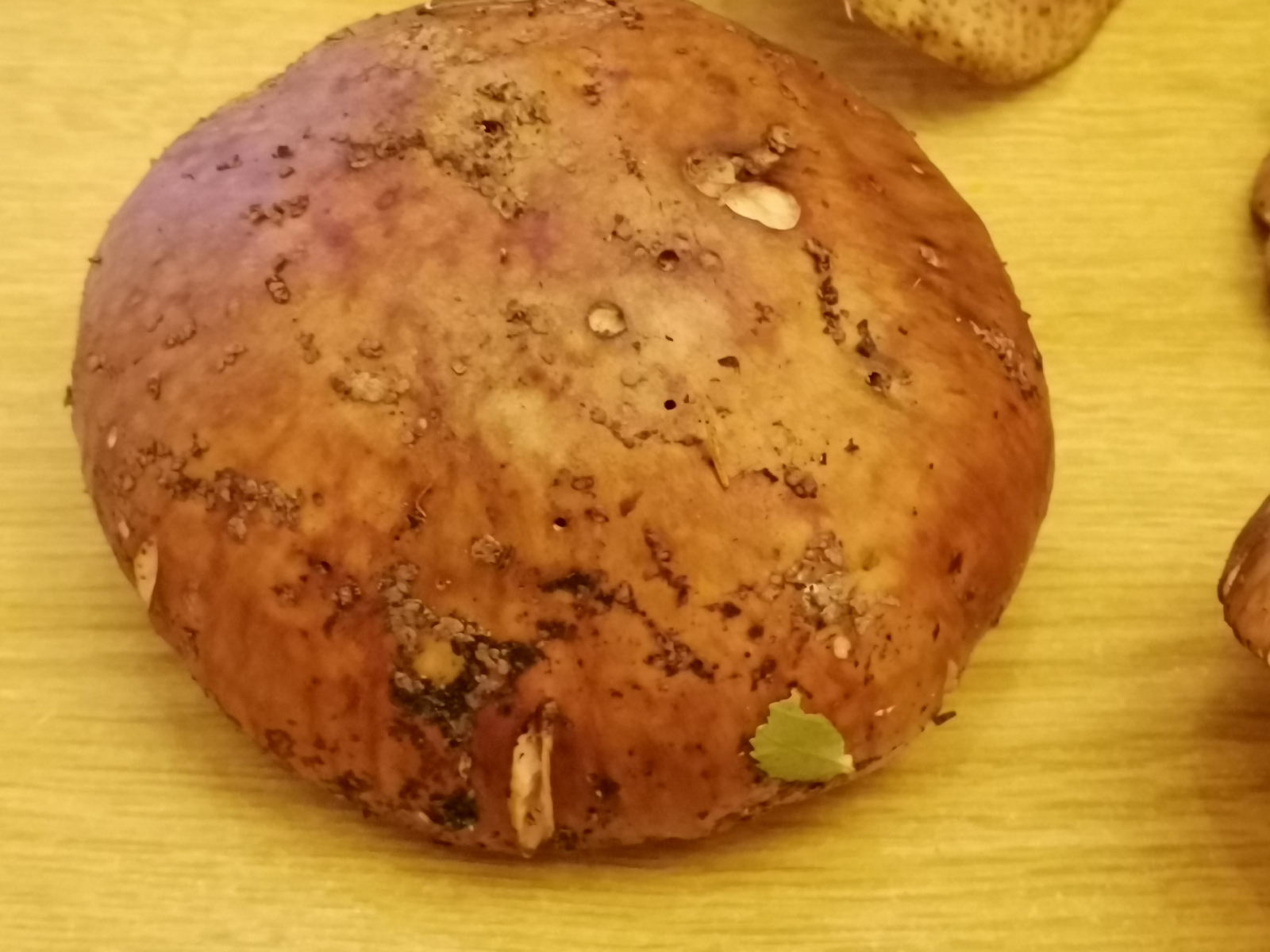 Falls du Natronlauge oder Kalilauge zur Verfügung hast, könntest du den Porling damit bepinseln und die Farbreaktion mit meinem Fund vergleichen: