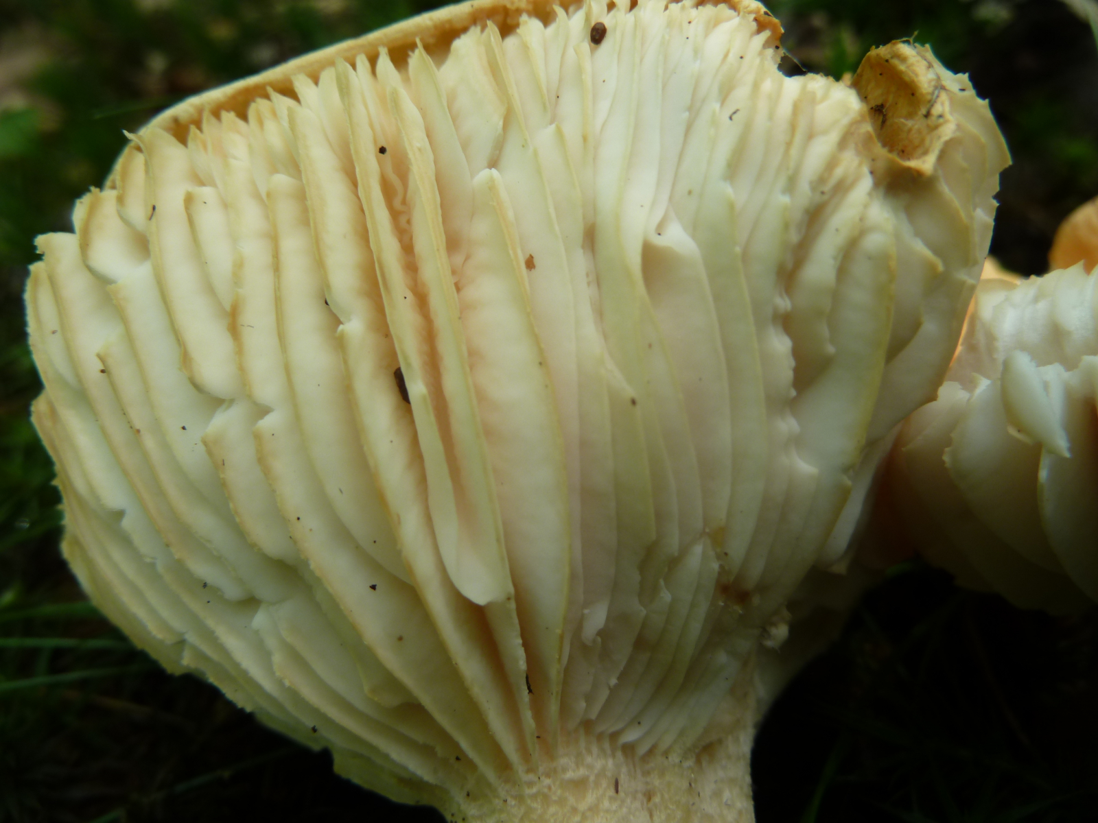 Diese Exemplare habe ich im Eichen-Hainbuchen-Wald auf basischem Basaltboden gefunden. Geruch deutlich mehlartig, ähnlich wie Maipilz, aber nicht so intensiv und auch etwas angenehmer (nicht so ranzig-ölig). Meine Bestimmungsversuche führten mich zum Waldschnecking Hygrophorus nemoreus. Allerdings habe weder weiter führende Literatur, noch einen Gesamtüberblick über die möglichen Verwechslungspartner. Kommentare und Korrekturvorschläge sind daher willkommen.