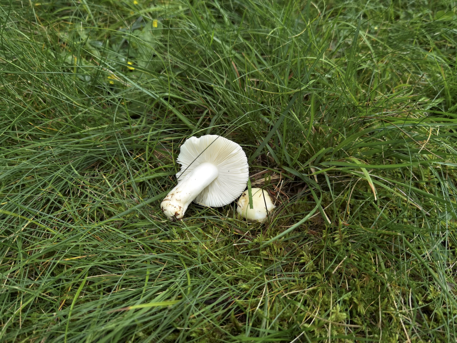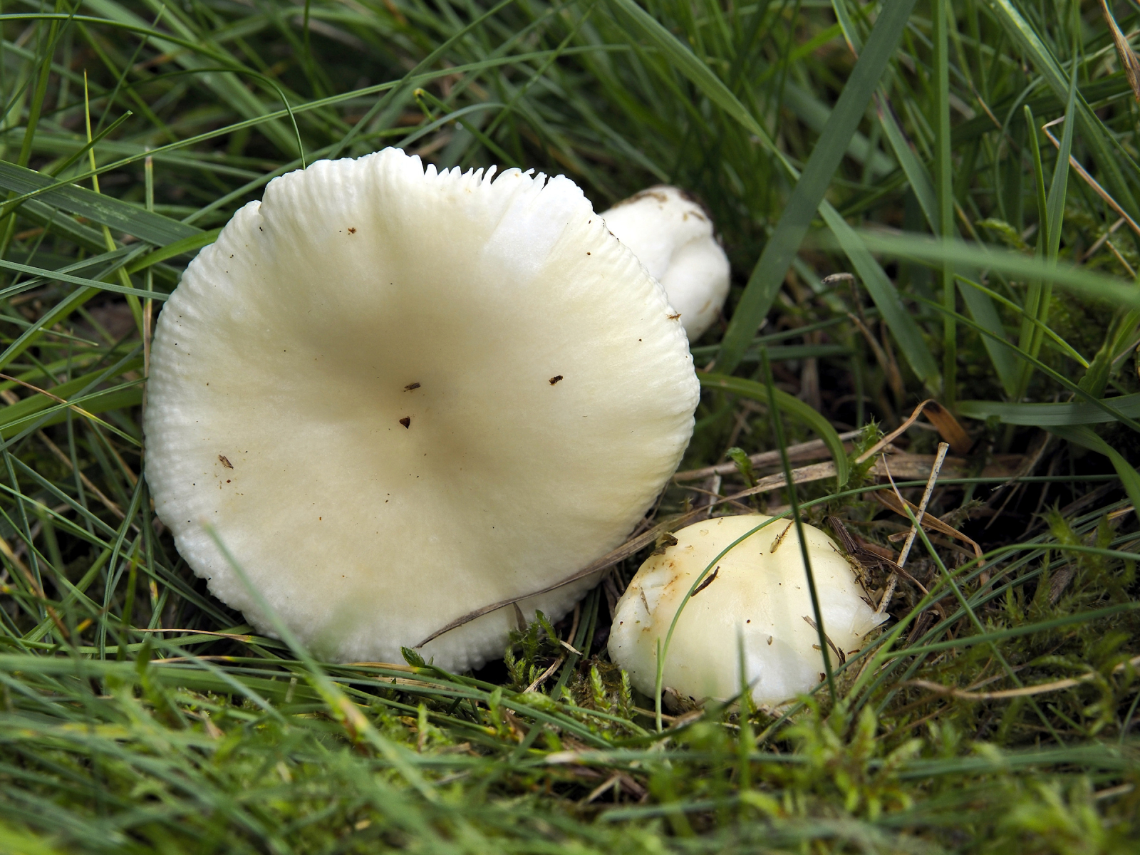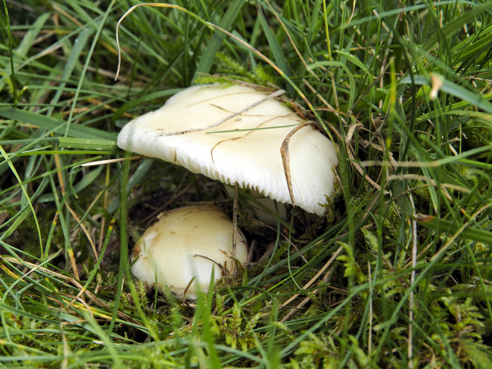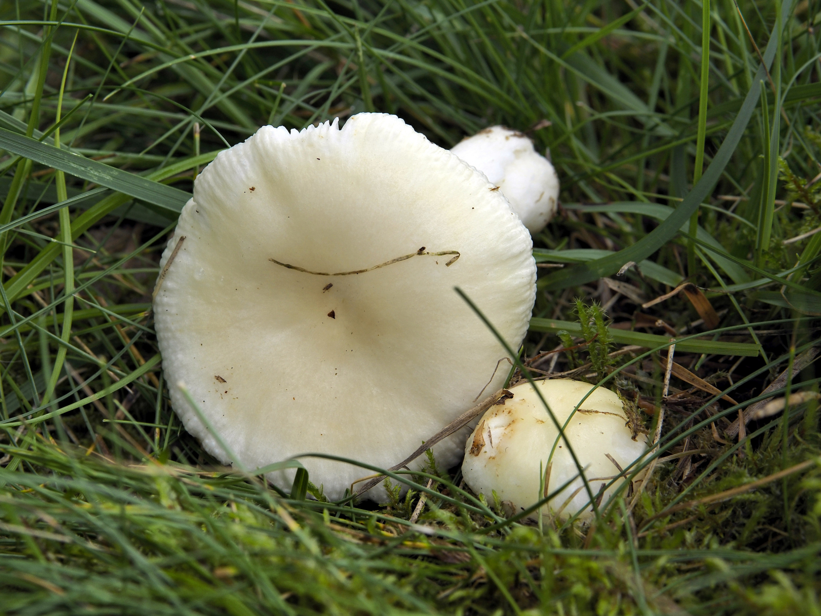 Von der Optik her ein relativ kleiner unauffälliger zarter Pilz mit creme-elfenbein gelblichen Hut, der Hutrand mehr weisslich und stark gerieft. Seine Oberfläche leicht klebrig/speckig aber trotzdem wenig verschmutzt, die Lamellen und der verhältnismässig lange Stiel weiss. Alle mit einem leicht verzögerten noch erträglich scharfen Geschmack. Mit dem Sporenpulver Ia und netzigem Sporenornament kam ich dadurch zur Gruppe Citrinae.