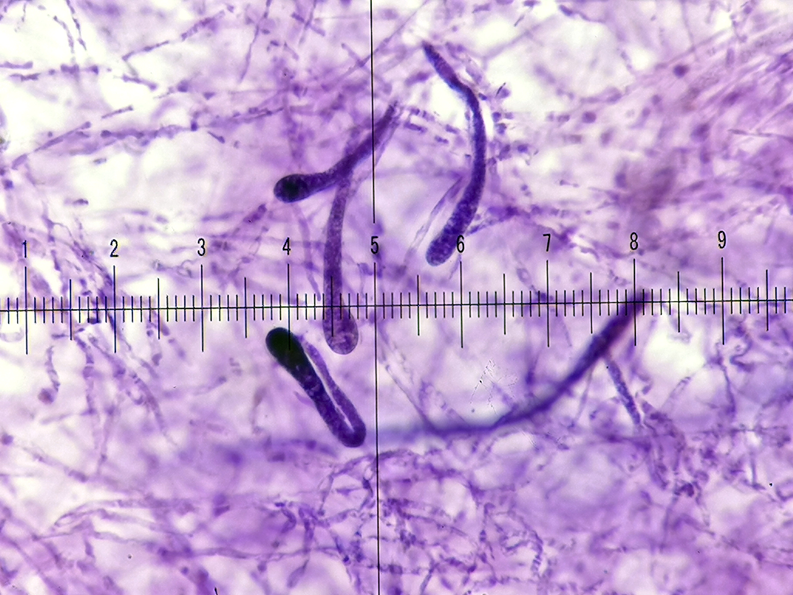 12) Kongo, die Zystiden waren unseptiert, die Haare überwiegend schmal zylindrisch und spitz zulaufend