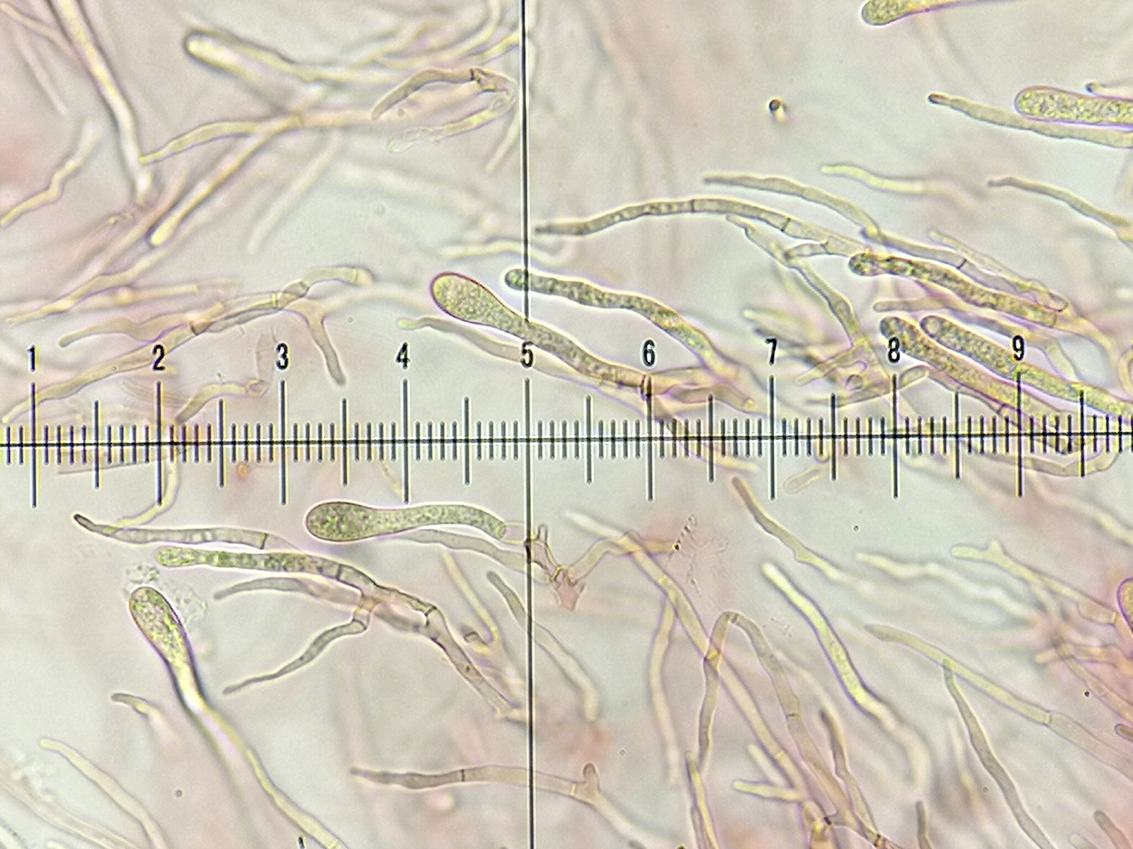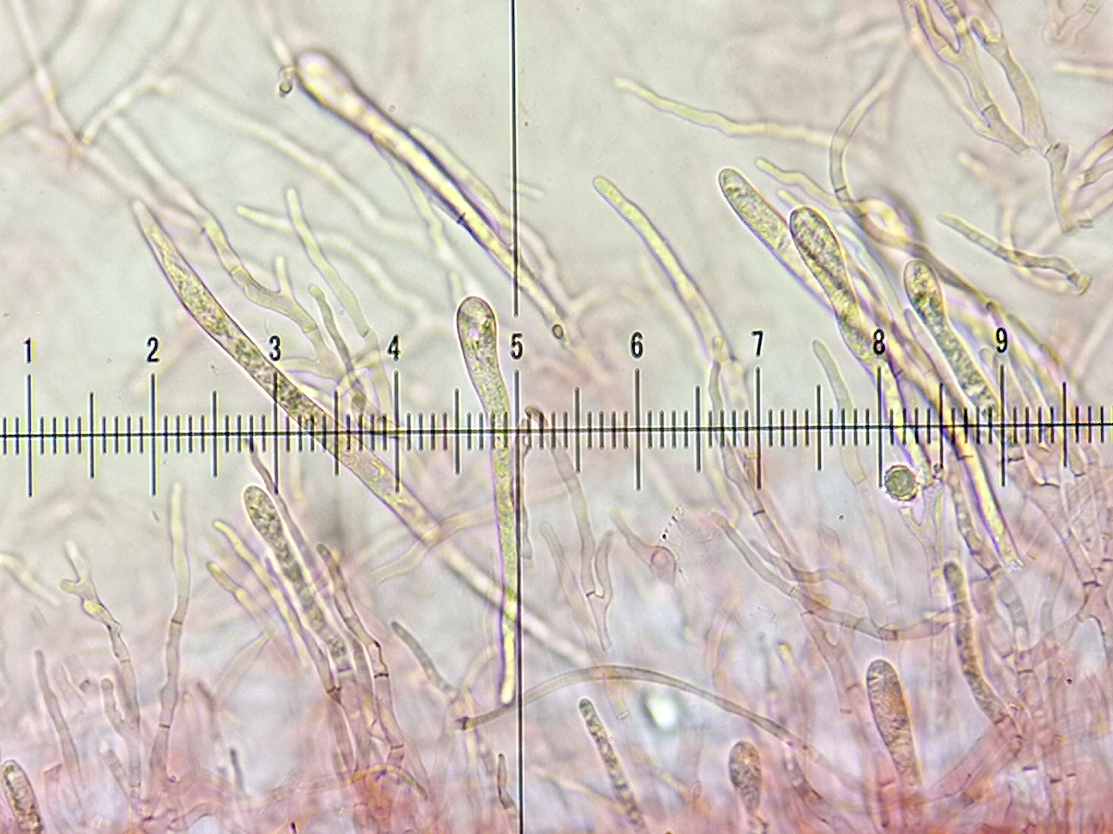 11) Kongo, auffallend oft waren diese keuligen Pileozystiden neben vereinzelt zylindrisch langen zu sehen