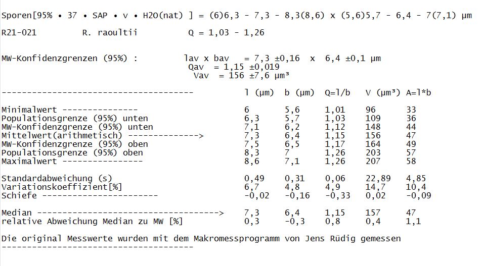 Viel Auswahl stand da nicht zur Verfügung. R. solaris die ähnlich aussieht hat SpP IIc und ist isoliertstachelig, fällt raus, R. citrina (gibt es die überhaupt?) wäre am Hutrand gelb und die Mitte rötlich und hätte teilnetzige Sporen, fällt raus, übrig blieb R. raoultii wegen der sonstigen übereinstimmenden Makro- wie Mikromerkmale nach Literatur.
