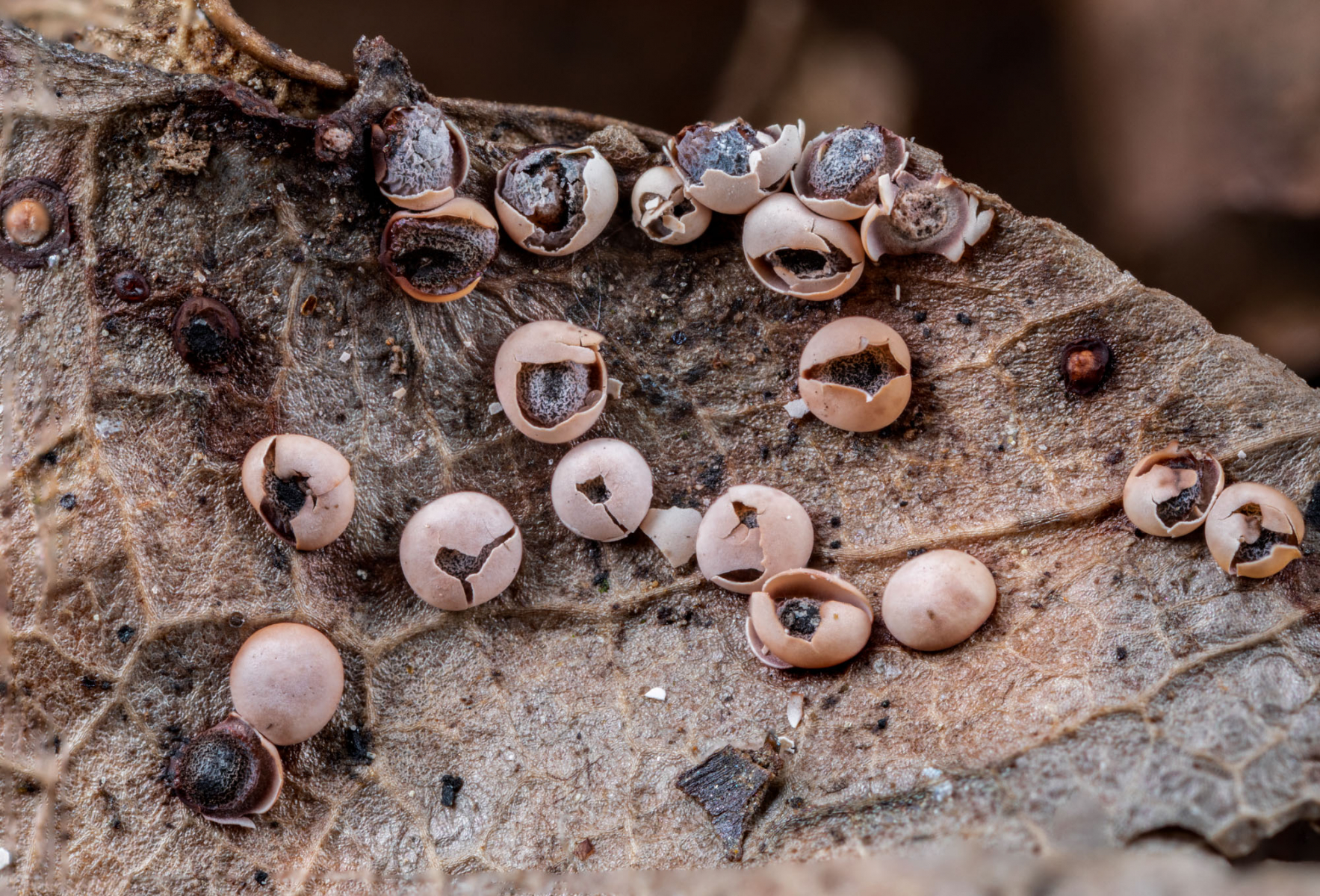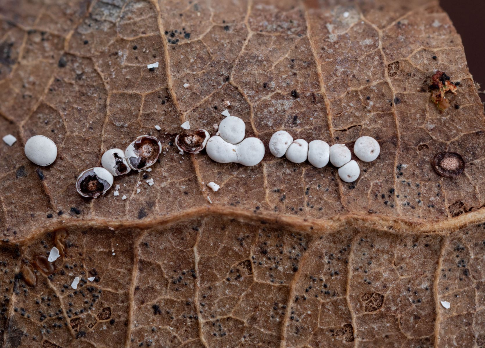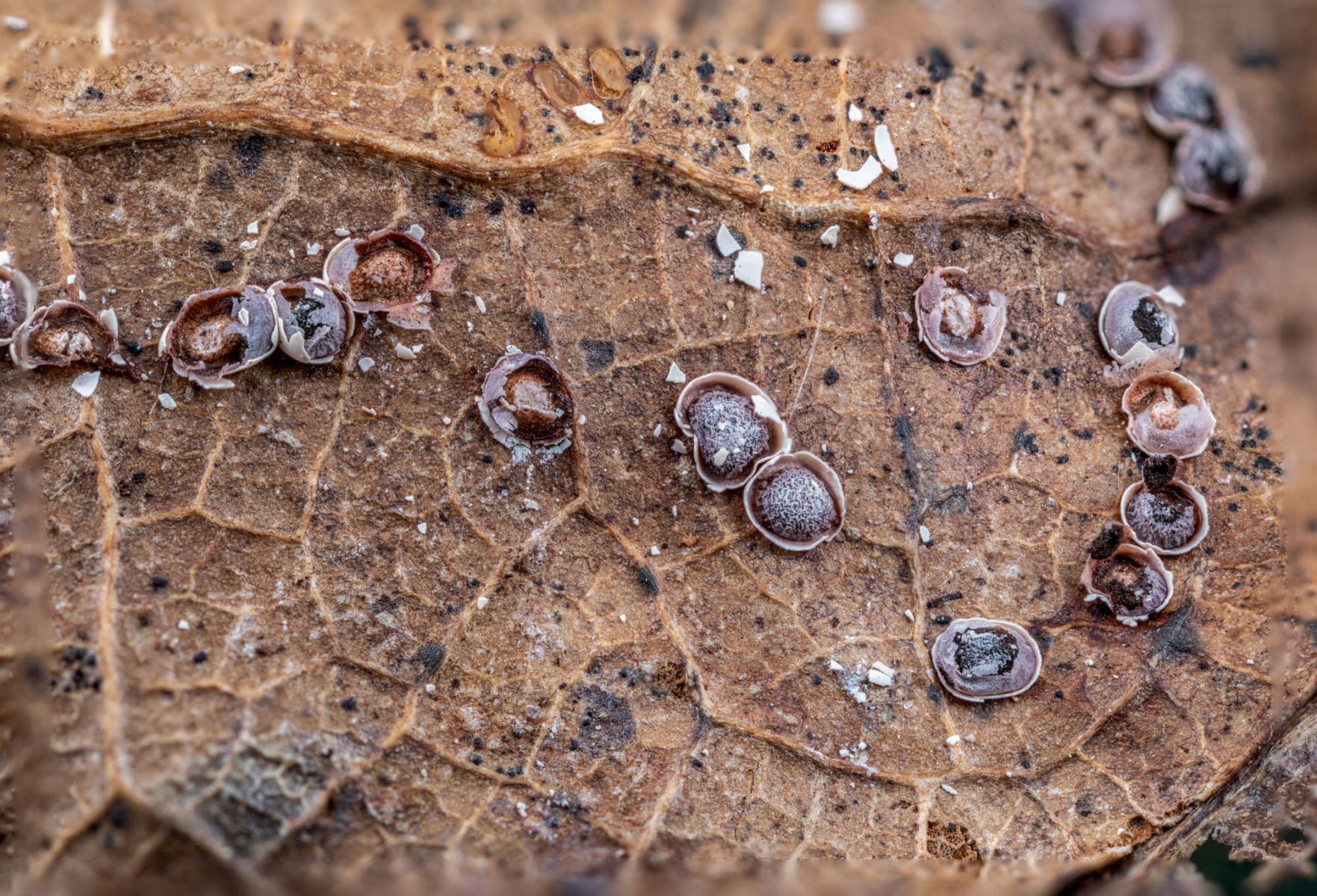 Am Fundplatz gibt es viele vermodernde Blätter (Eiche) und andere vermodernde Pflanzenteile.