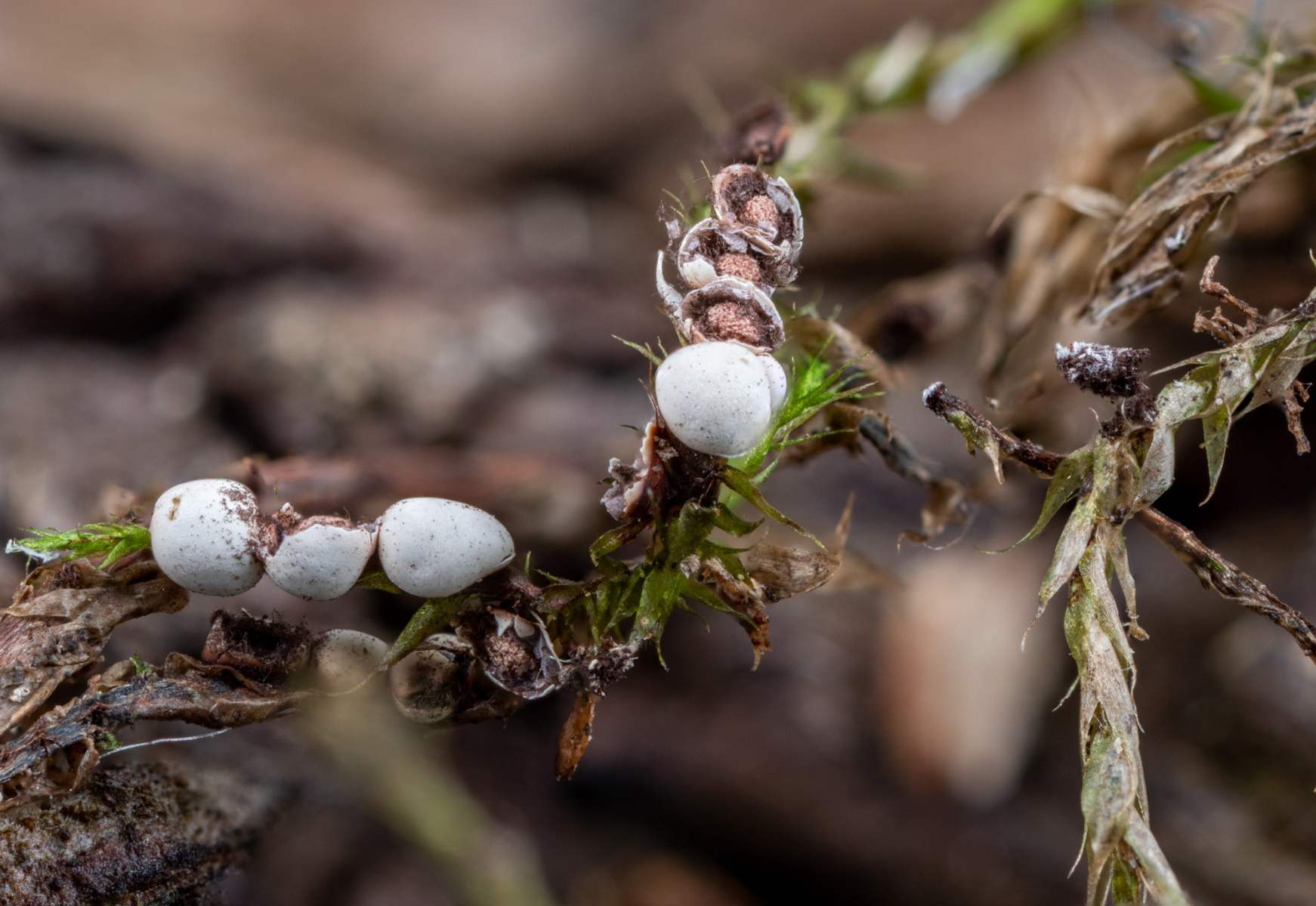diesen Schleimpilz fand ich in Flussnähe auf eine Wegböschung in einem Laubwald.