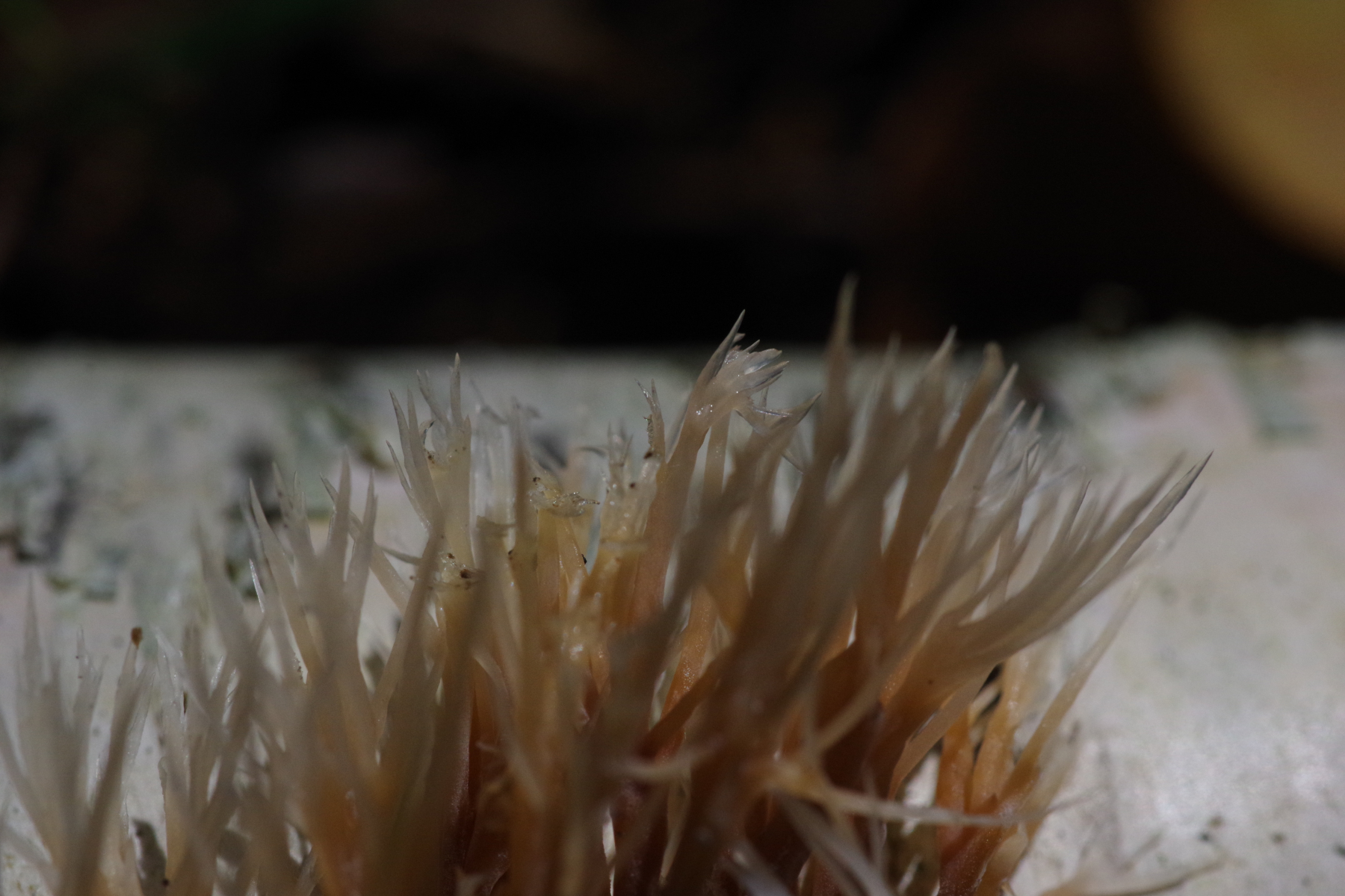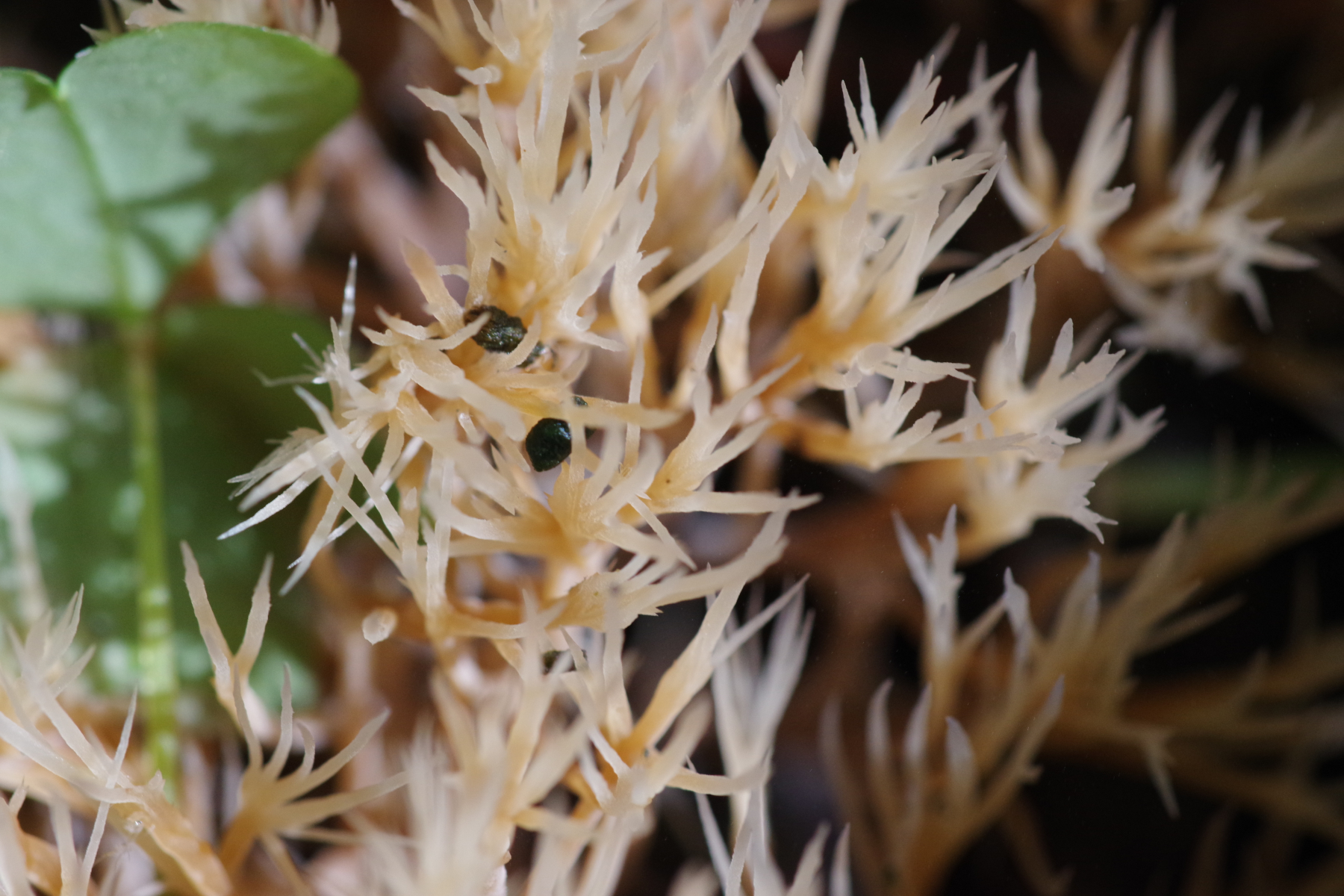 1) Pterula cf. multifida - an der Gattung besteht wohl kein Zweifel und hinsichtlich der Art weiß ich nicht, was es da sonst noch gibt, wahrscheinlich aber schon multifida. Einen Beleg habe ich mitgenommen. Unter anderem auch, weil der Pilz vor Ort überhaupt nicht stinken wollte. Jetzt habe ich ihn in ein Glas gesperrt.