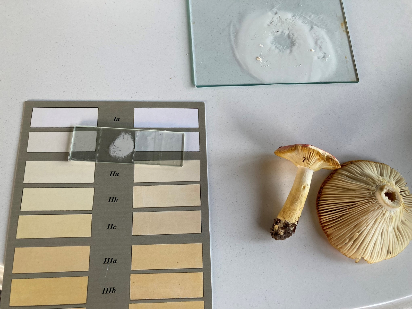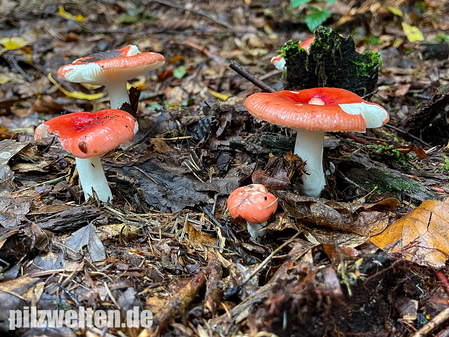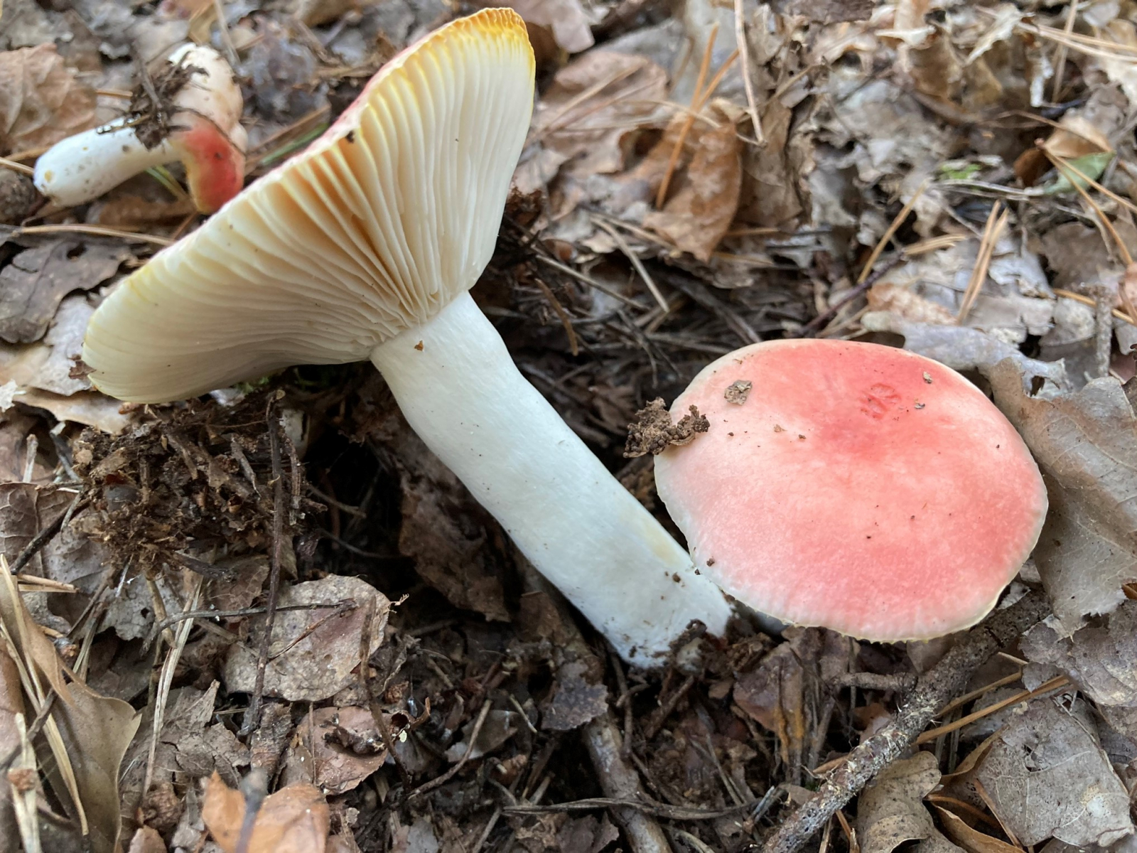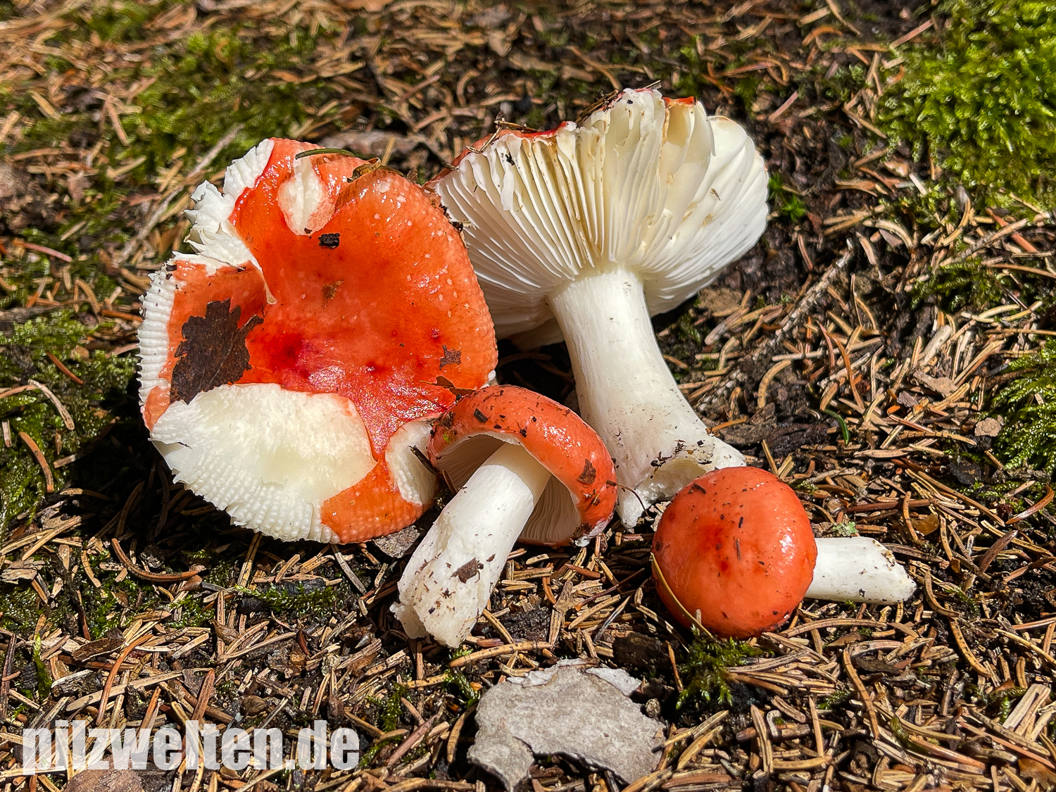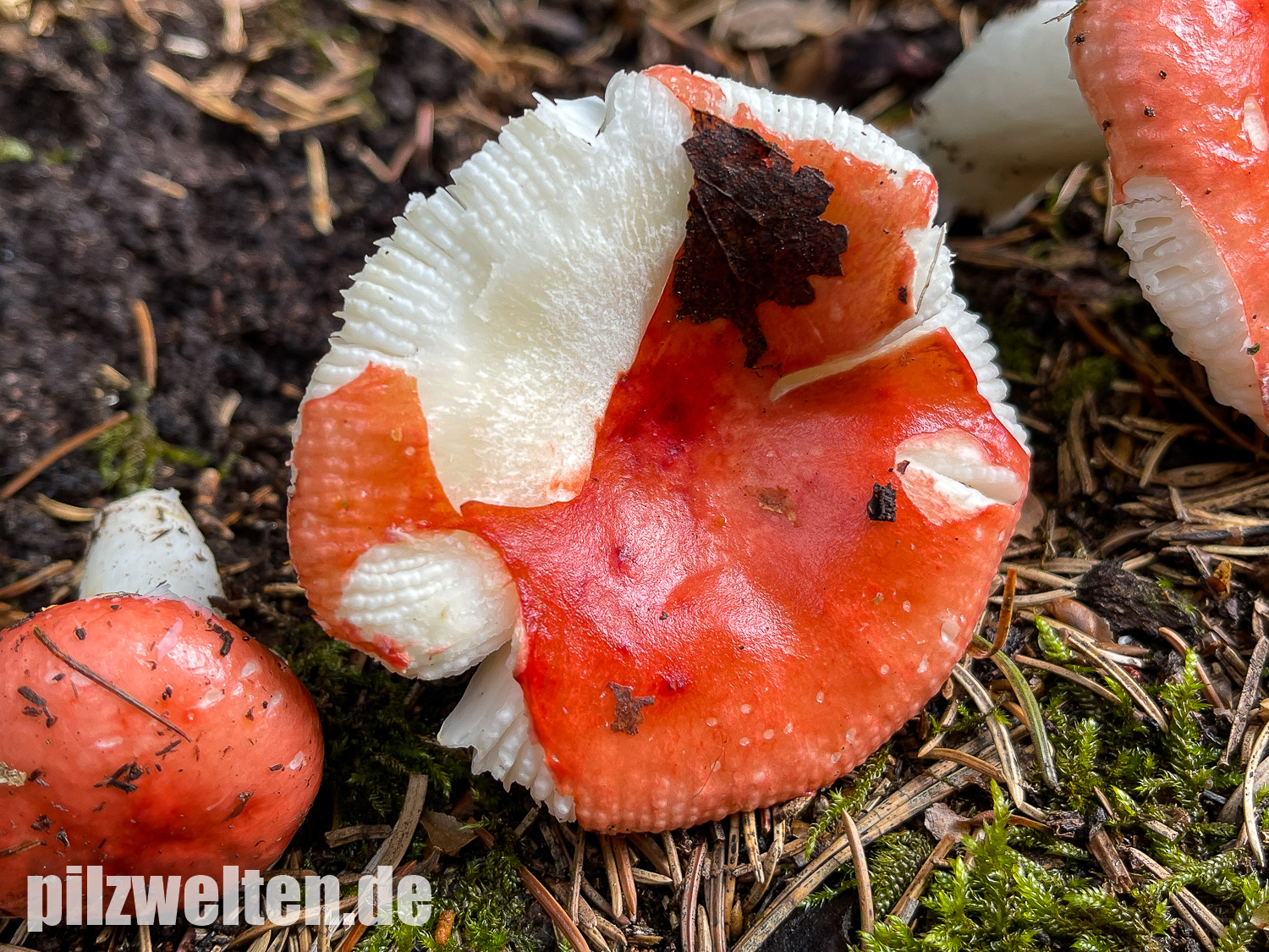 Bei unseren Nachforschungen sind wir auf Russula luteotacta gestoßen. Der (laut unseren Nachforschungen) einzige rote Täubling mit komplett weißlich gefärbten Stiel in Kombination mit scharfer und gleichzeitig bitterer Geschmacksprobe. Auch die Farbreaktionen mit Eisensulfat (graurosa) & Guajak (blaugrün) würden zu Russula luteotacta passen. Ansonsten haben wir nichts gefunden, was besser zu unserem Fund passt. Vielleicht hat hier ja anhand der Bilder noch eine andere Idee?