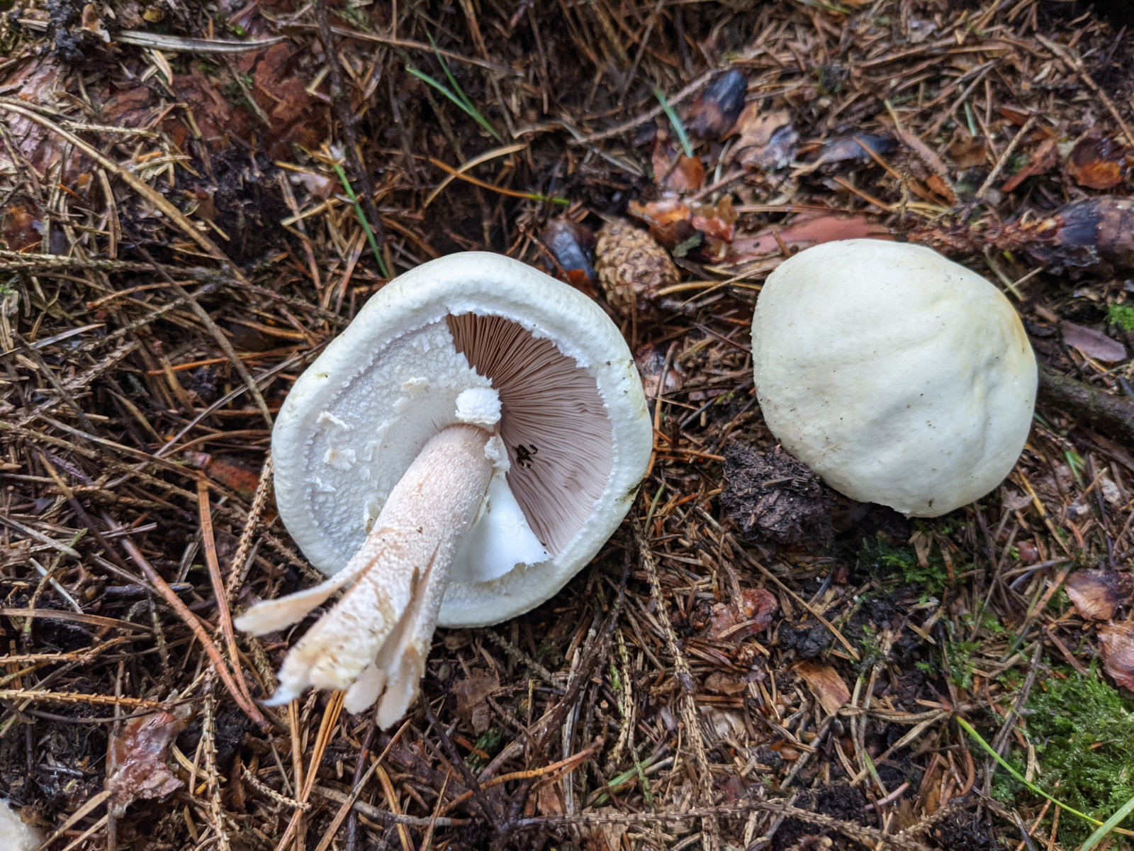 2. Ich bin nicht sicher, ob diese hier die gleiche Art zeigen, also in jung und alt. Eigentlich sind dafür die Lamellen bei den jungen zu hell... Wegen der dunklen Lamellen: Agaricus?