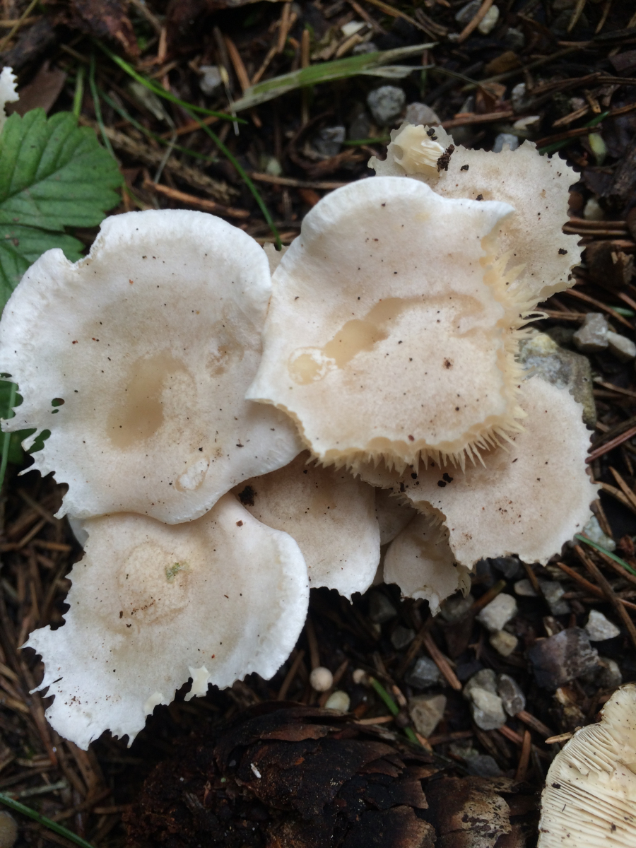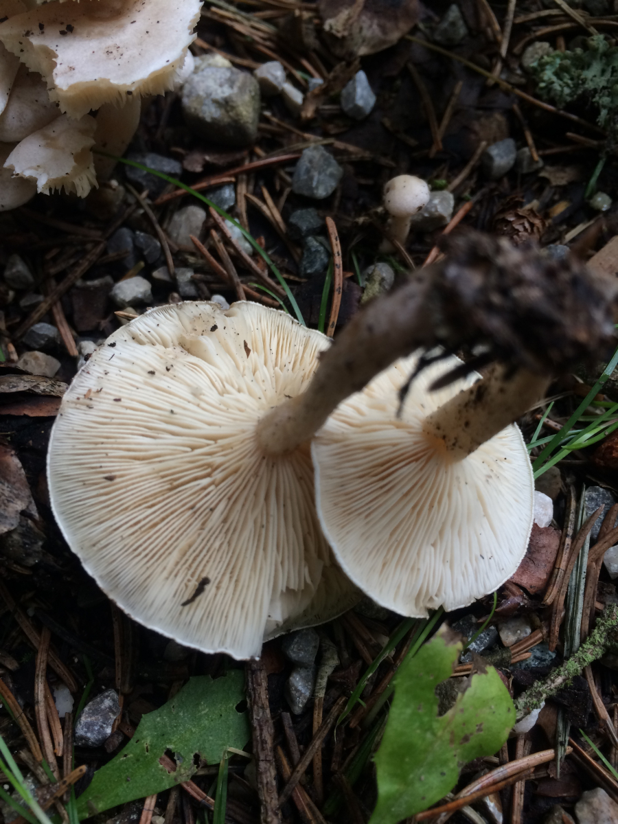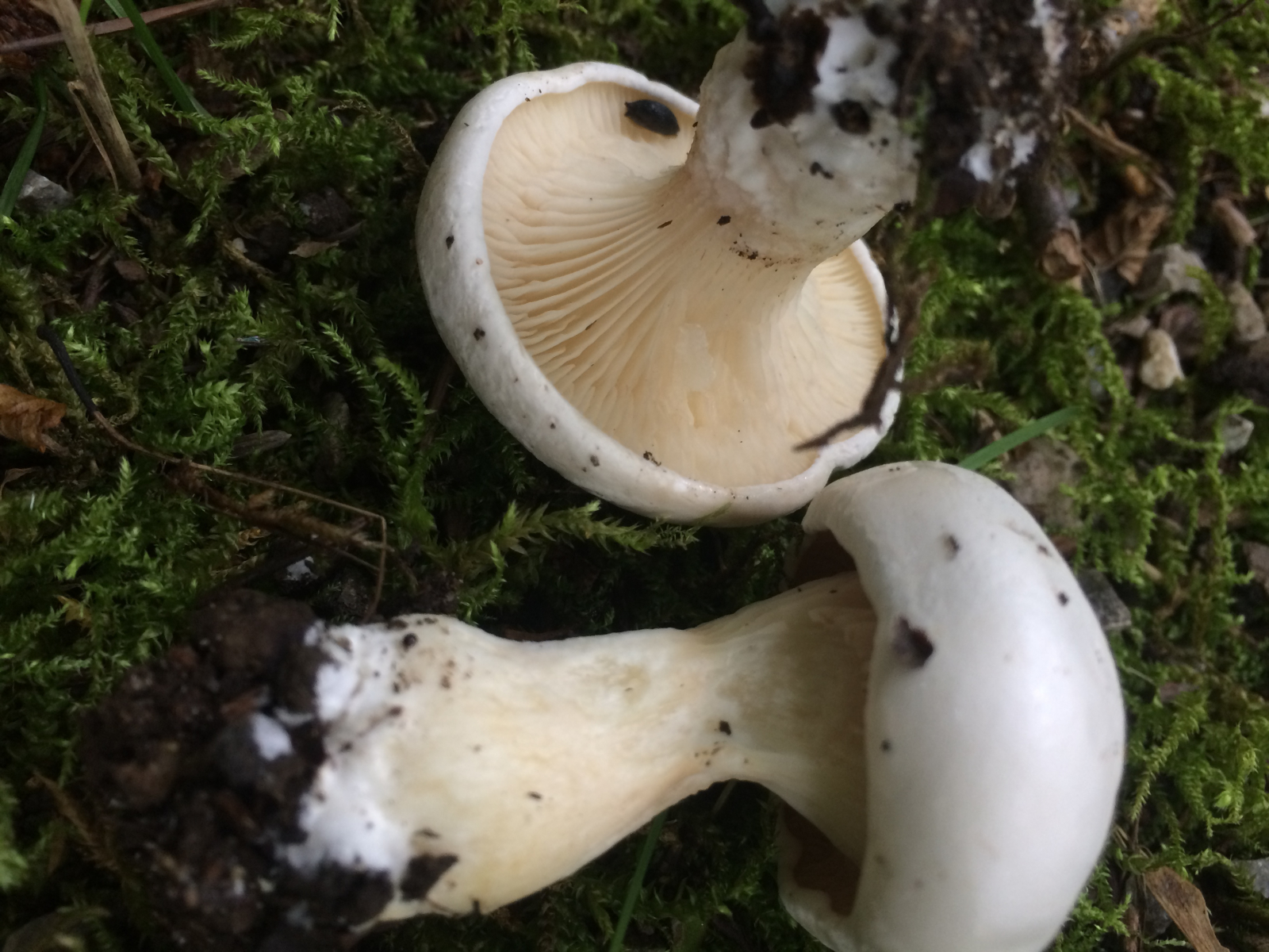 diese beiden kleinen weißen Trichterlinge hab ich heute auf meiner Friedhofsrunde entdeckt. Hutdurchmesser jeweils ca 4 cm, Geruch bei beiden ähnlich, schon pilzig mit leicht stechender, säuerlicher Komponente. Der erste roch intensiver.