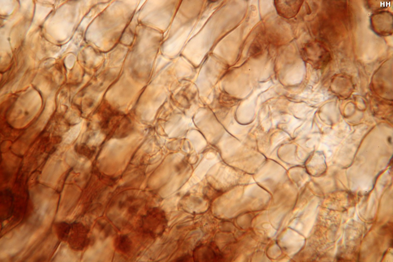 Subhymeniumzellen farblos bis bräunlich, kurz, dünnwandig mit Schnallen
