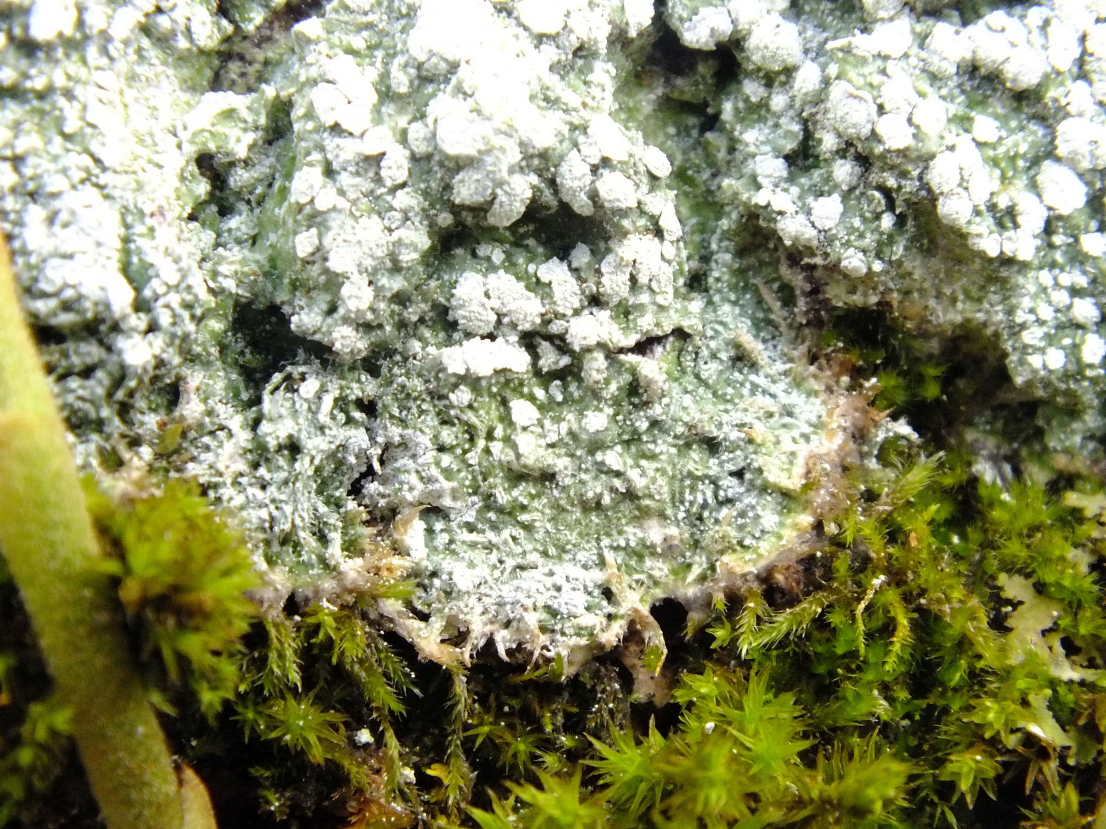 Ich selbst denke, dass es sich um eine Pertusaria albescens mit weißen Soralen handeln könnte.