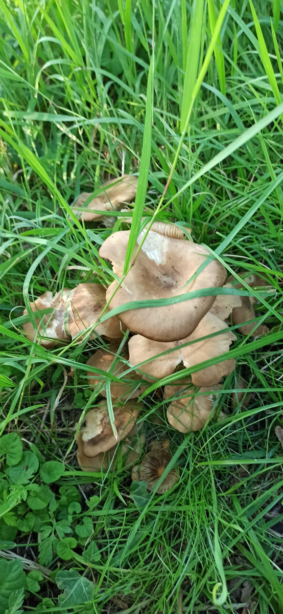 Wieder Samerrott: am Wegesrand vom Laubwald denke ich Braune Rasling entdeckt zu haben. Was meint Ihr? Sporenpulver weiß, Stiel-Spitze weiß (denke von Sporen), laengsfaserig, Hut dünn, Haut leicht knorpelig, lasst sich tortenstückartig fast bis Mitte abziehen. Büschel IG wachsend, gerne mit Schleimschneckenbehang. Liege ich richtig? Lg