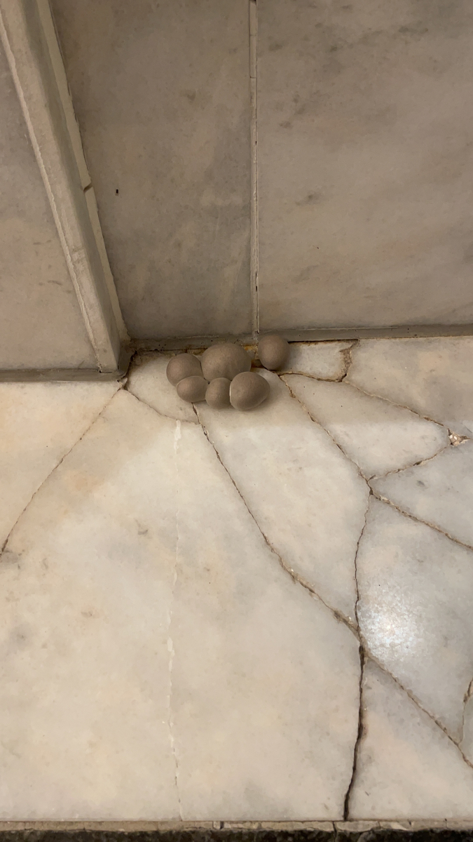Total unheimlich solche Pilze plötzlich nach dem Urlaub im Bad zu finden 🙈 Sie sind aufliegend auf den Fliesen entstanden, aber direkt in der Nähe mehrerer Spalten zwischen den gebrochenen Fliesen , wo also etwas Gemäuer sichtbar ist