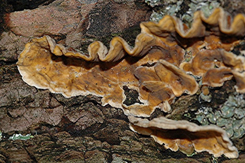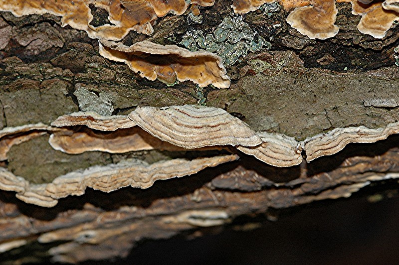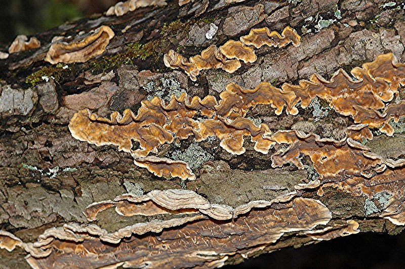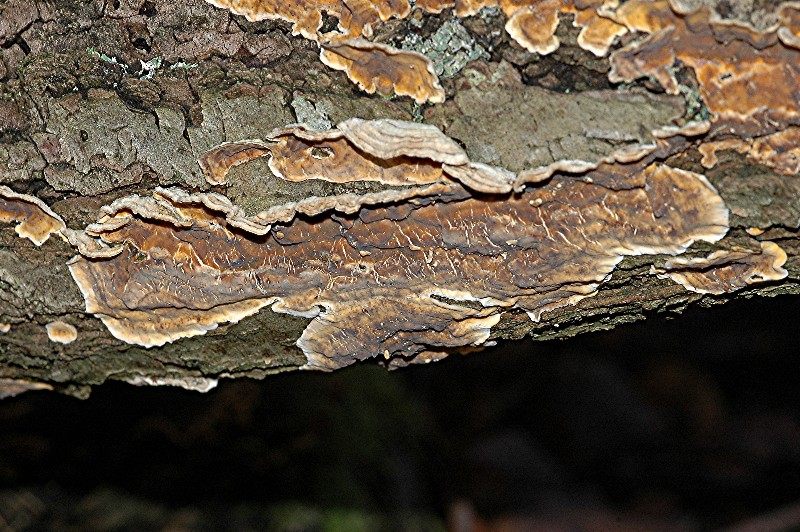 Resupinat wachsender Pilz an am Boden liegendem Eichenast