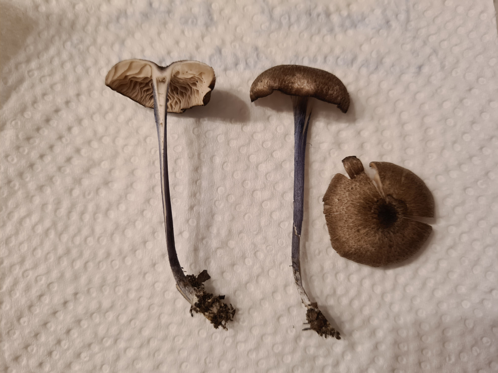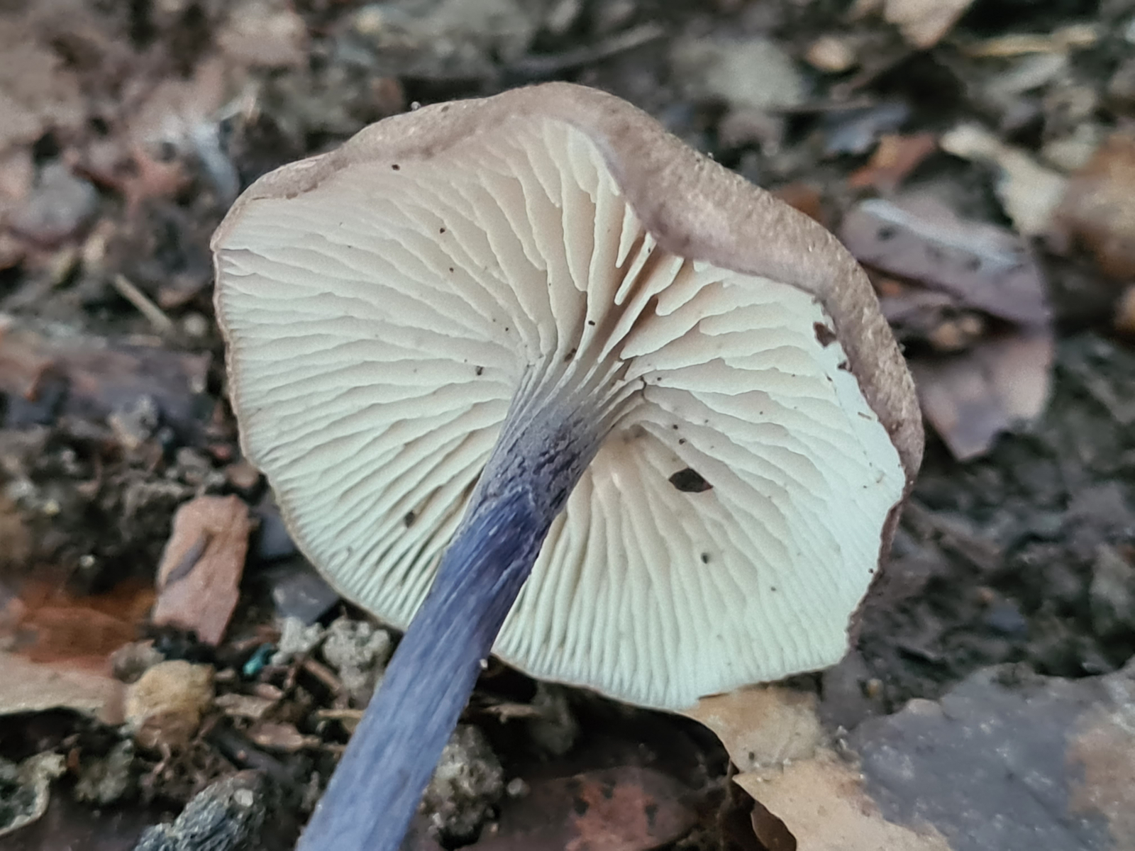 Heute im Kottenforst in der Nähe von Bornheim (zwischen Bonn und Köln, NRW) habe ich diese Rötlinge mit blauen Stielen und bräunlichen Hüten gefunden.