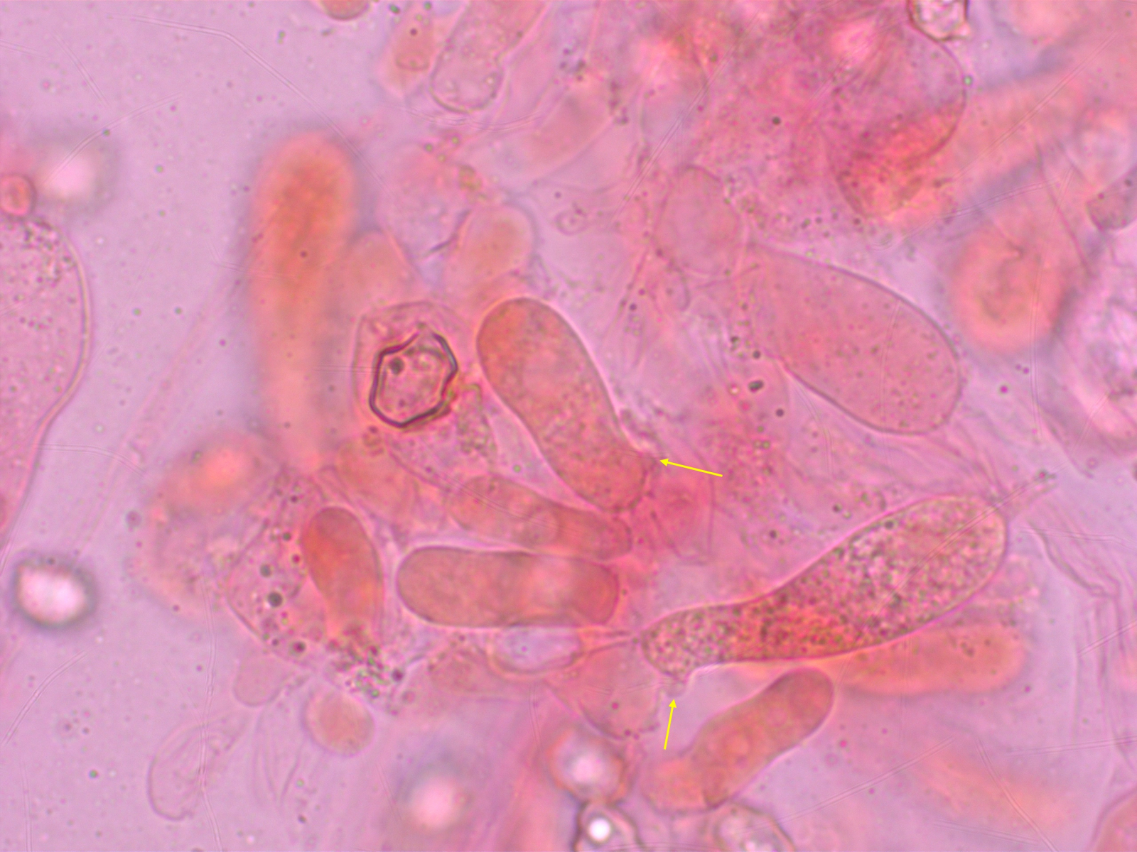 Basidiolen mit Schnallen. Zystiden fehlen.