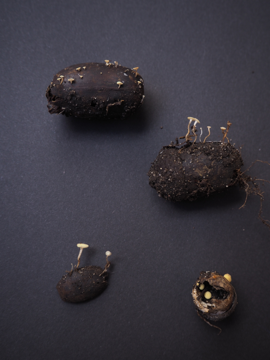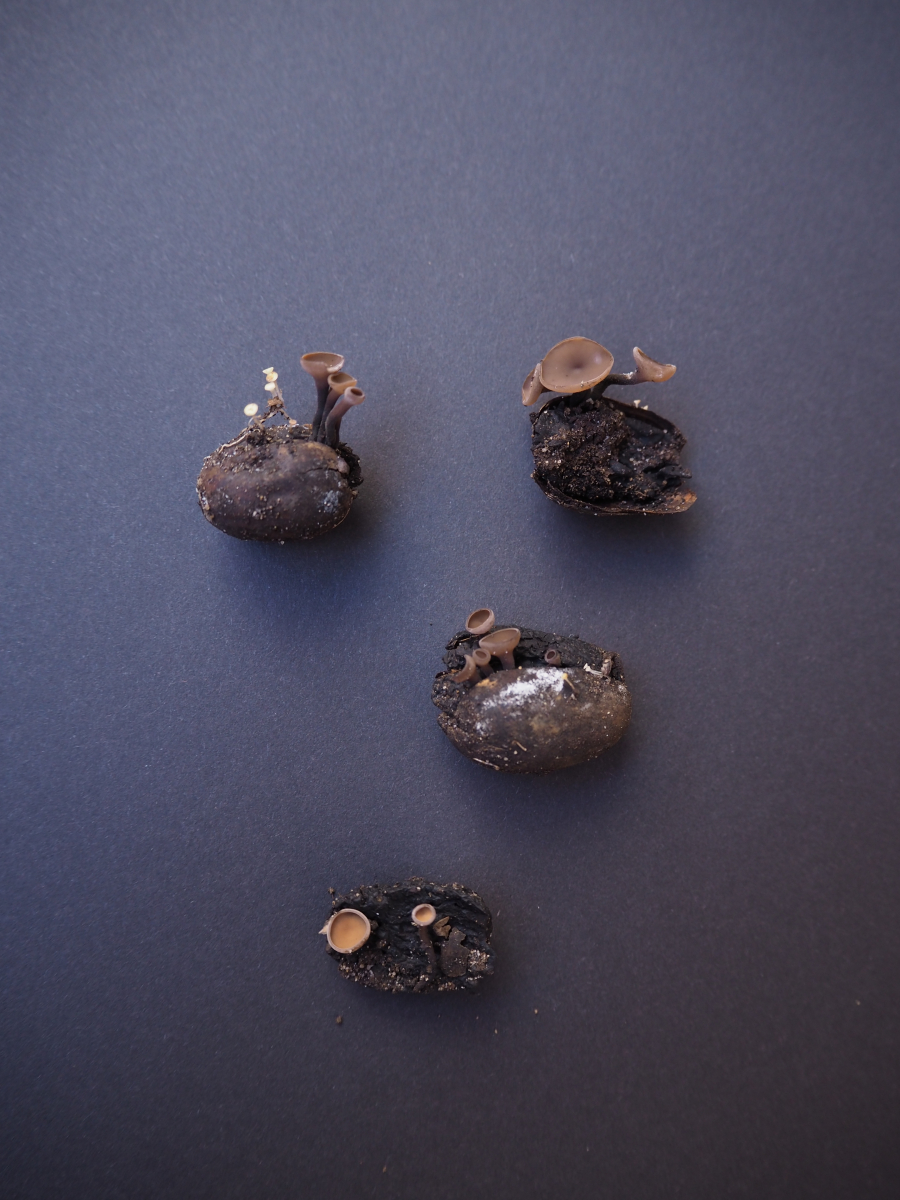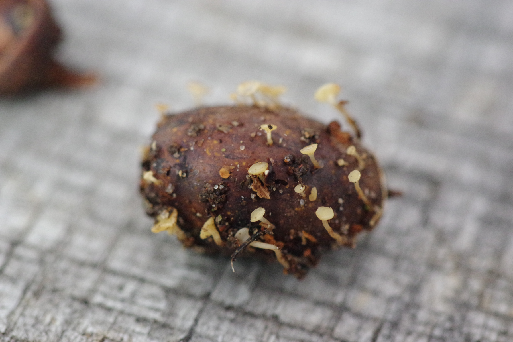 Hallo, irgendwann dieser Tage dachte ich mir, dass es an der Zeit wäre, nach dem Becher zu suchen, den es an alten Eicheln geben soll. Unter der ersten Eiche, die ich zu diesem Zweck aufsuchte, die am Straßenrand und damit ziemlich offen stehtn gleich alles voll damit. Soweit ich den Vergleichsbildern entnehme werden die noch größer und dann braun gefärbt.
