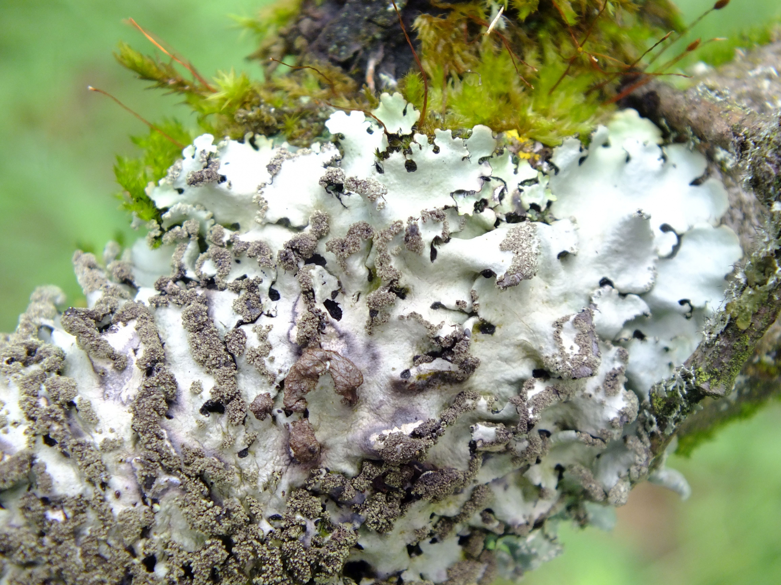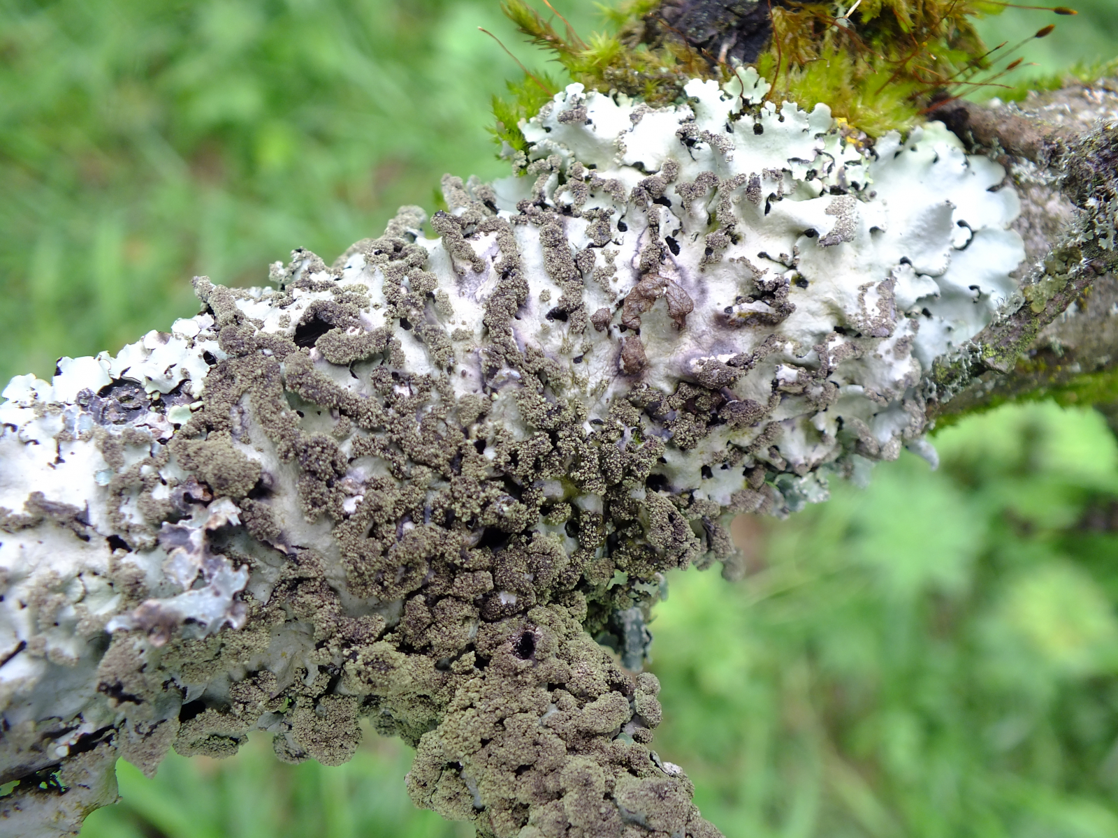 Habe ich hier etwa Parmotrema perlatum - ich weiß nicht, ob die so üppige Sorale ausbildet - oder nicht doch eher Hypotrachyna (revoluta) vor mir?