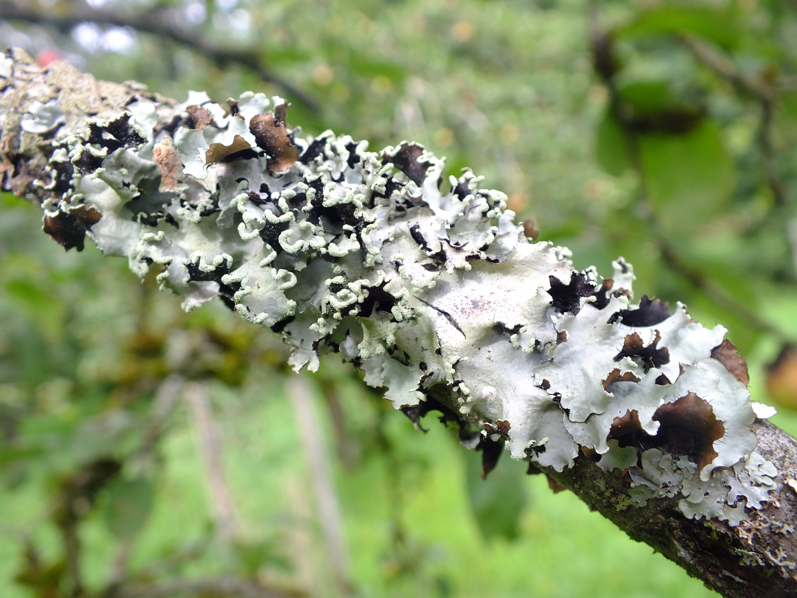 An den Ästen der Apfelbäume vor Ort finde ich die vermutlich gleichen Flechten wieder.