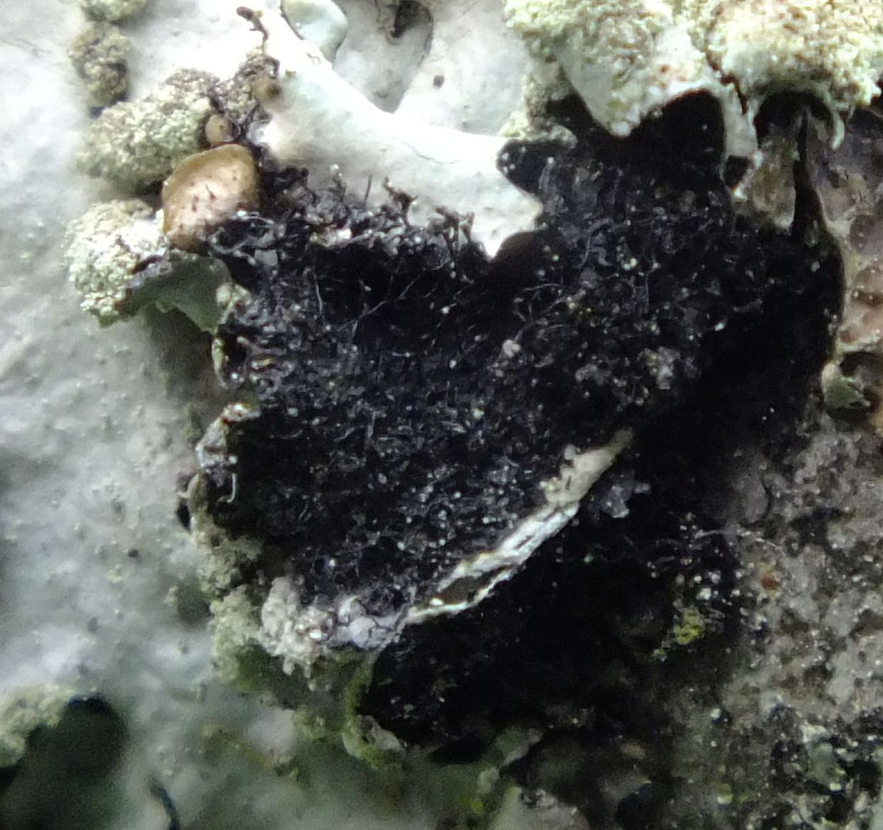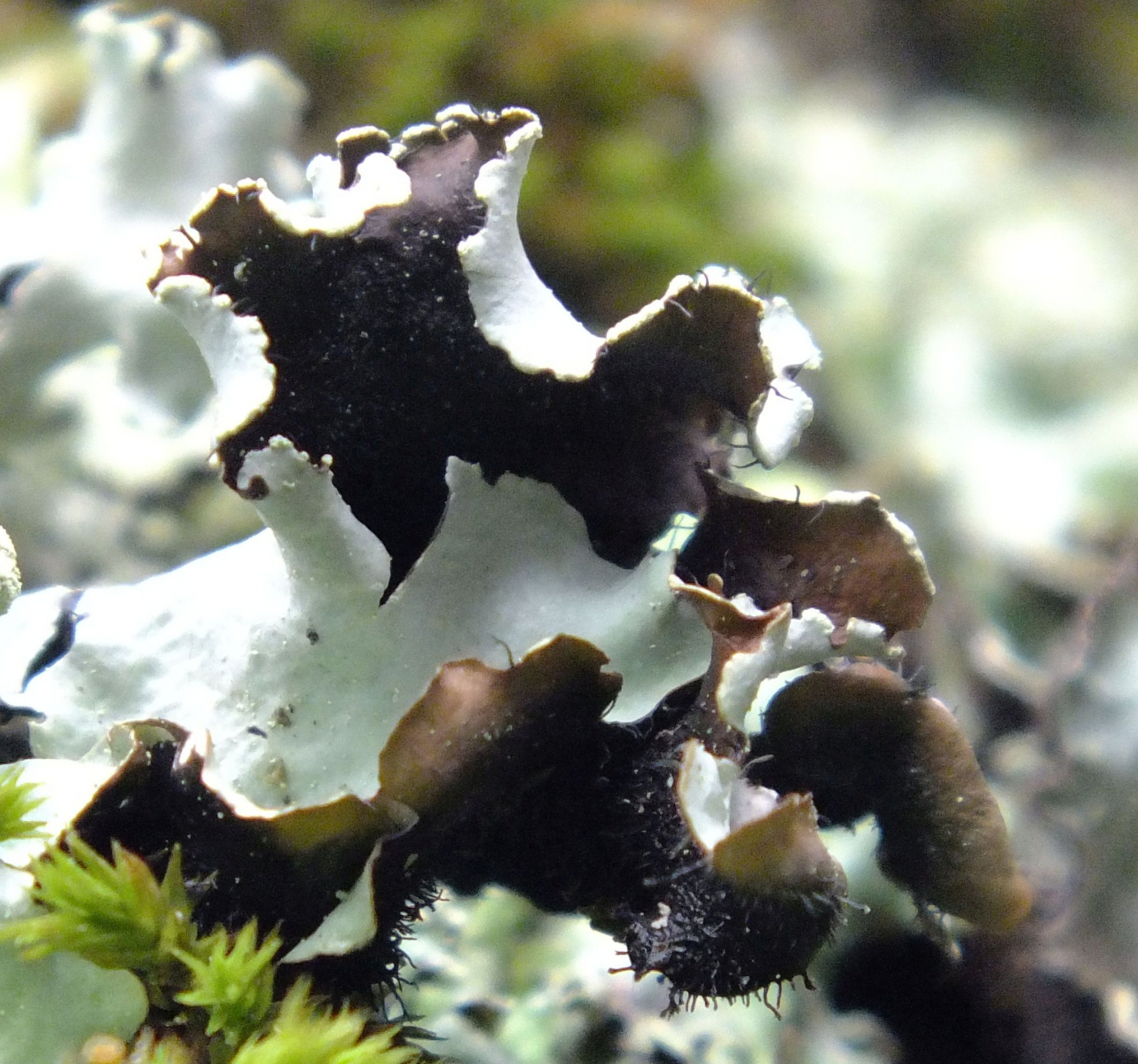 Die Unterseite (Bild 4) ist schwarz, am Rand der jüngeren Lappen aber braun und trägt kaum (schwarze, unverzweigte) Rhizinien.