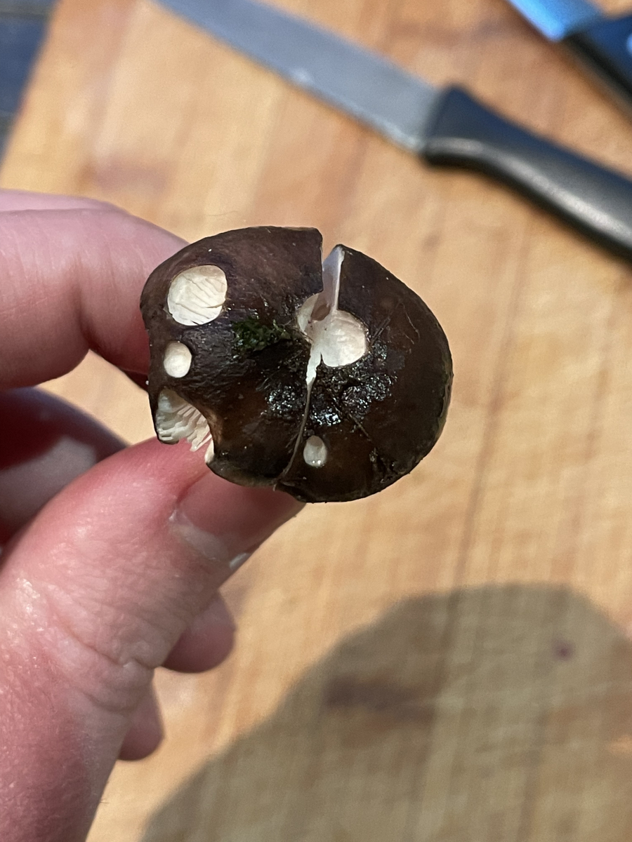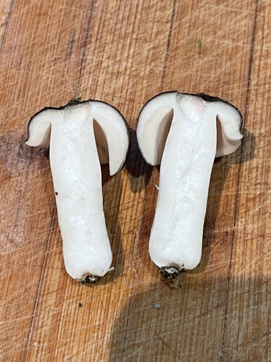 Ein gutes Merkmal ist das graue Hutfleisch unter der abgezogenen Huthaut