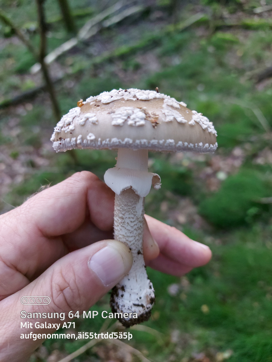 Ist das hier ein Perlpilz? Oder doch ein Pantherpilz? Oder doch was anderes?