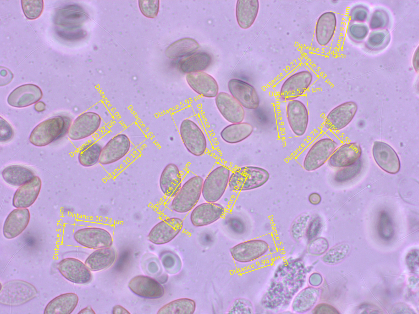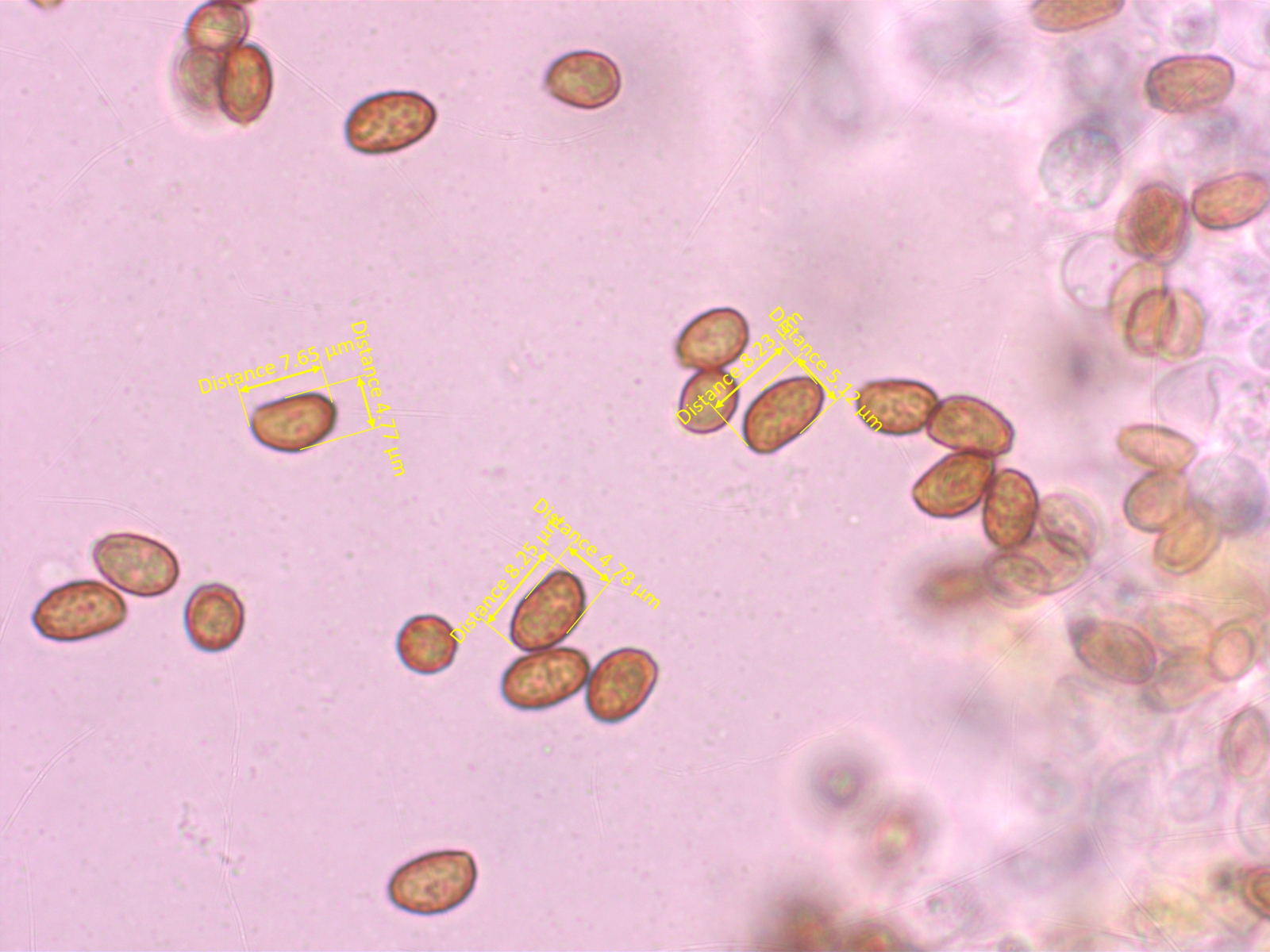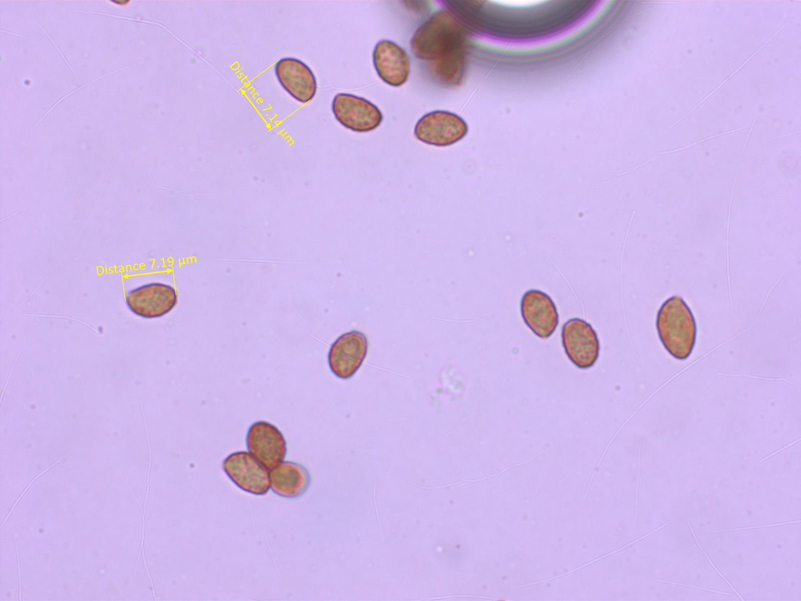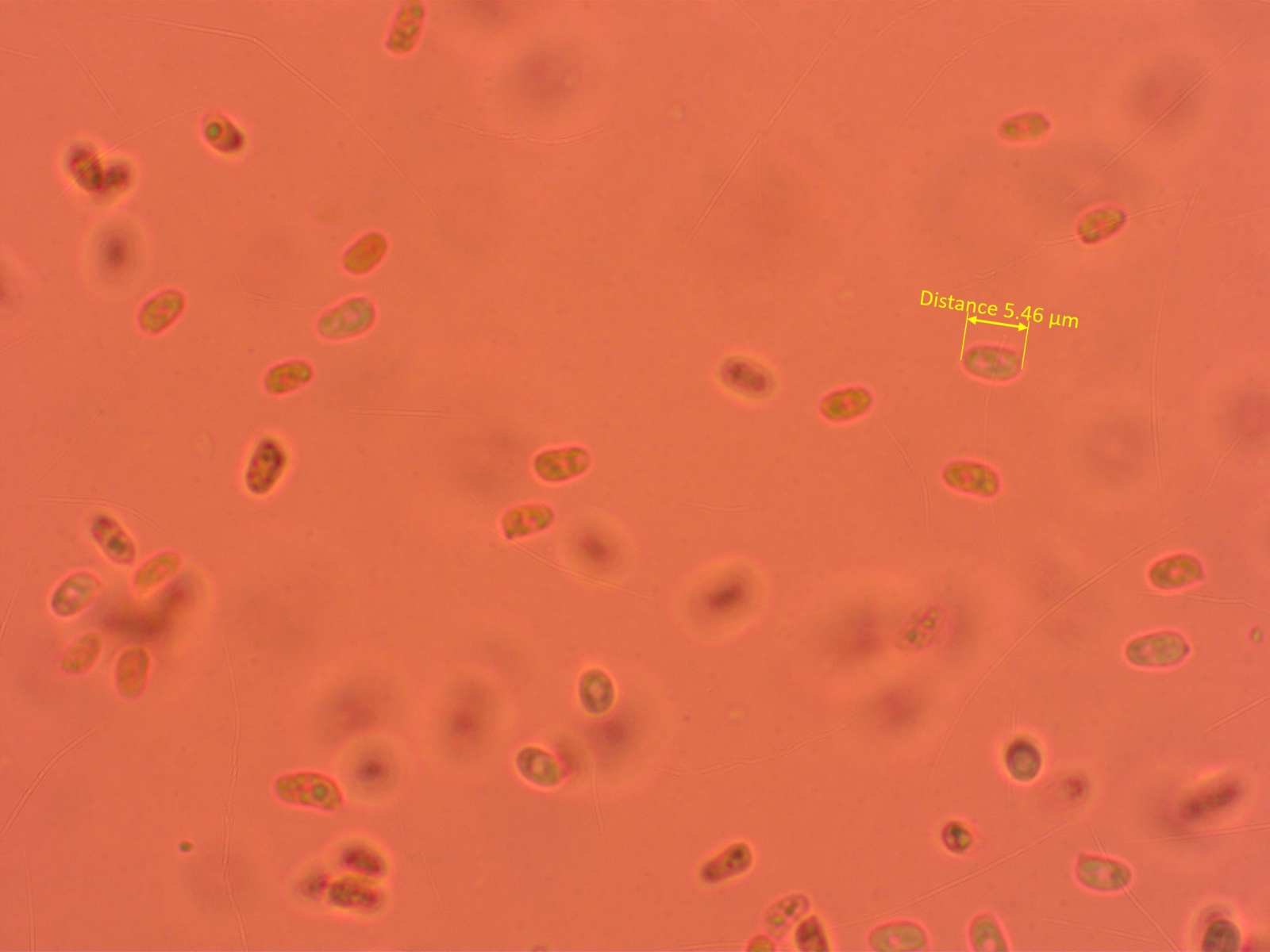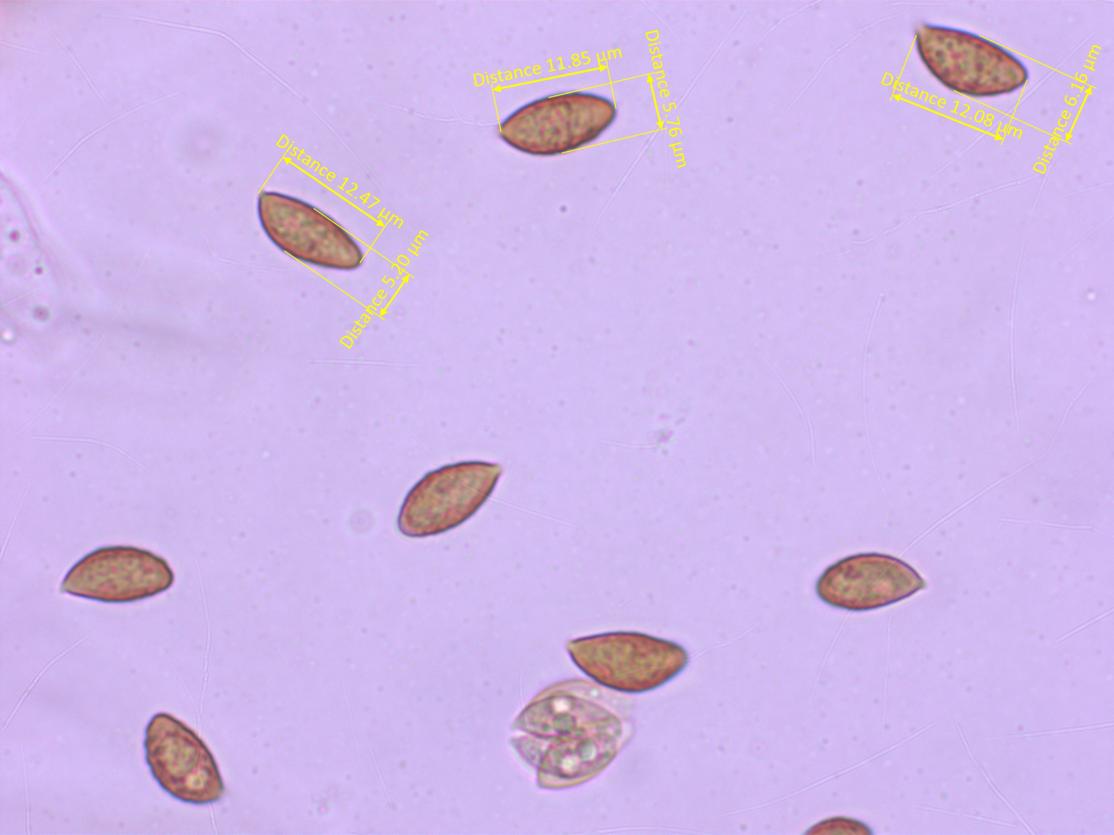 Sporen recht schlank, mandel- oder zitronenförmig.