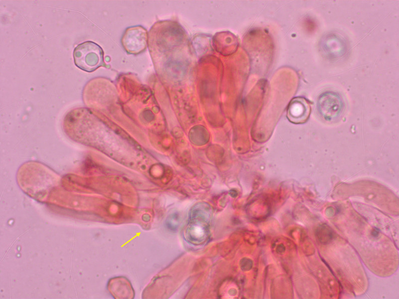 Störend: Die häufigste Zystidenform war deutlich lageniform mit sehr dickem Bauchteil, ungestielt.