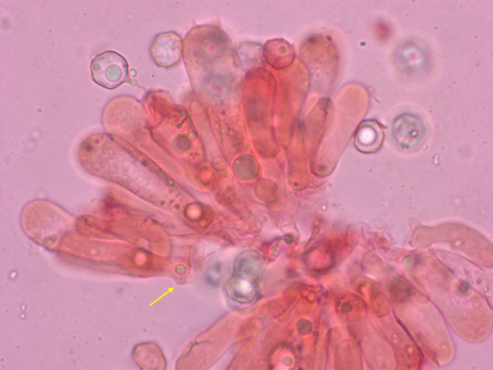 Störend: Die häufigste Zystidenform war deutlich lageniform mit sehr dickem Bauchteil, ungestielt.