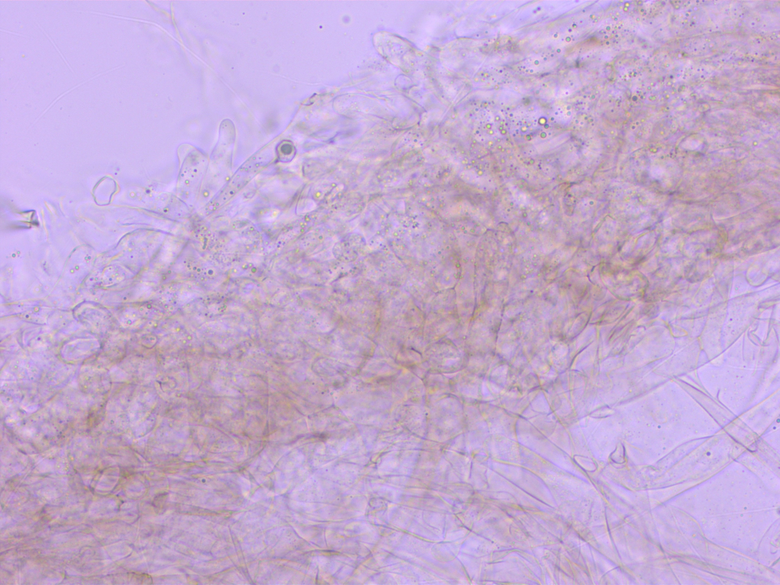 Die Frage nach Zystiden kann ich nicht eindeutig beantworten. Es gab hier und da solche schlanken, aber auffälligen Zellen, die die Basidiolen deutlich überragten.