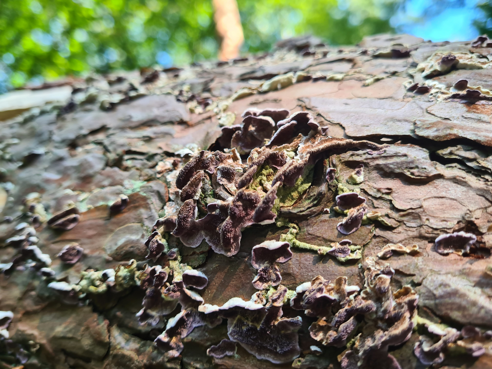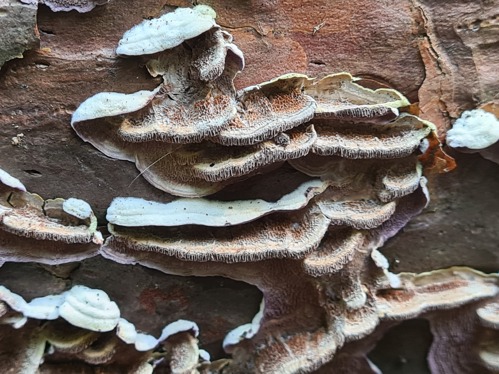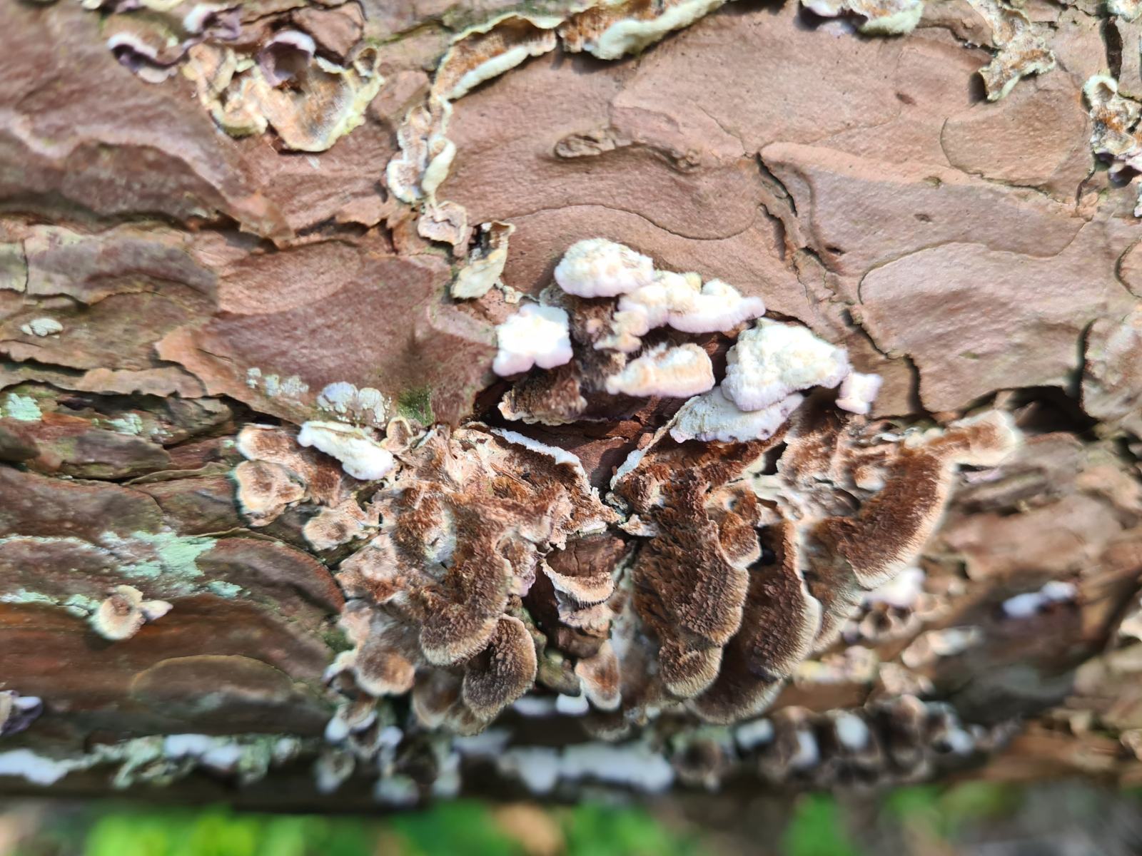 kann jmd.sagen, was hier für ein Porling sein könnte, der auf einer umfallenen Kiefer wächst.