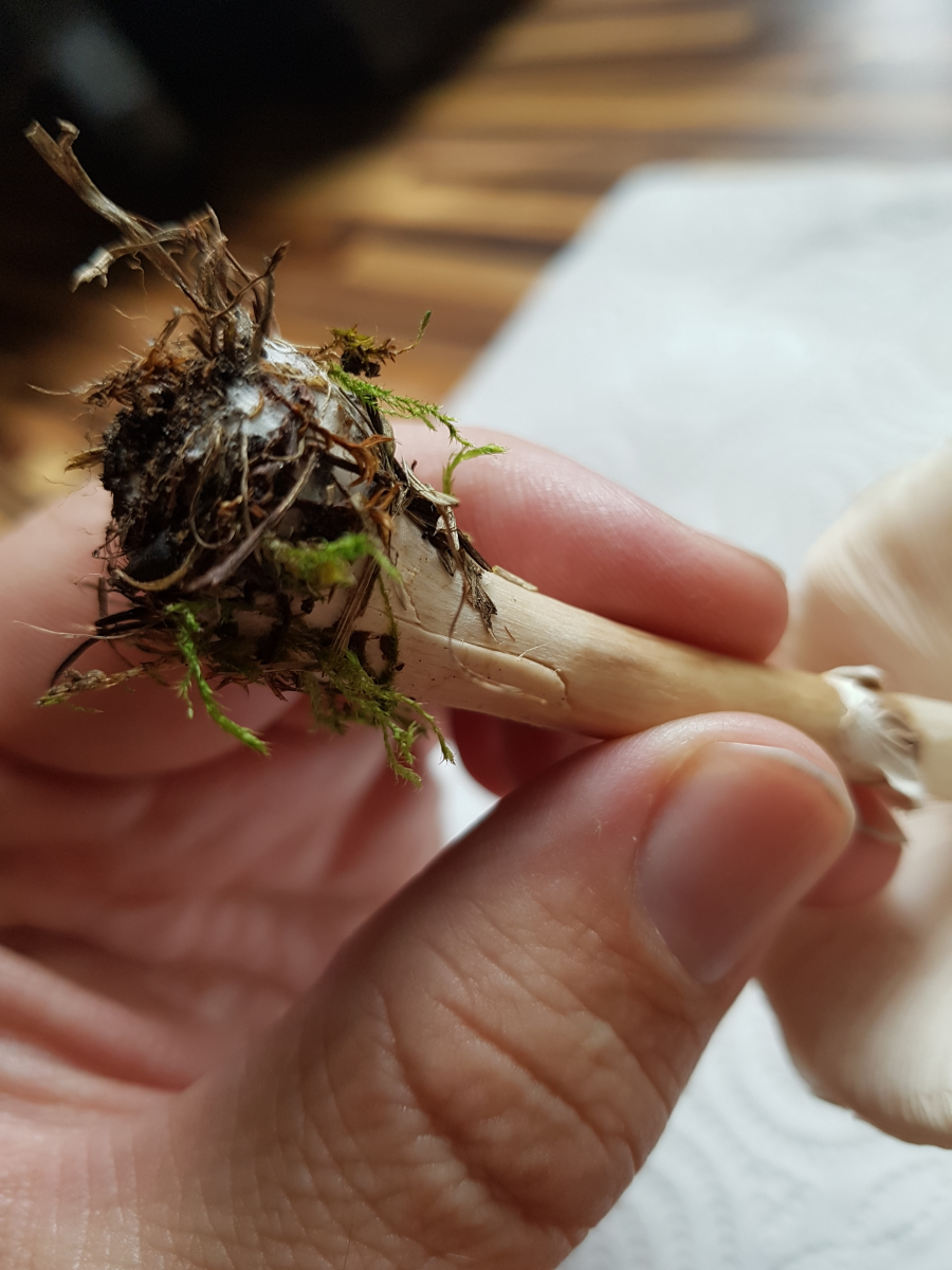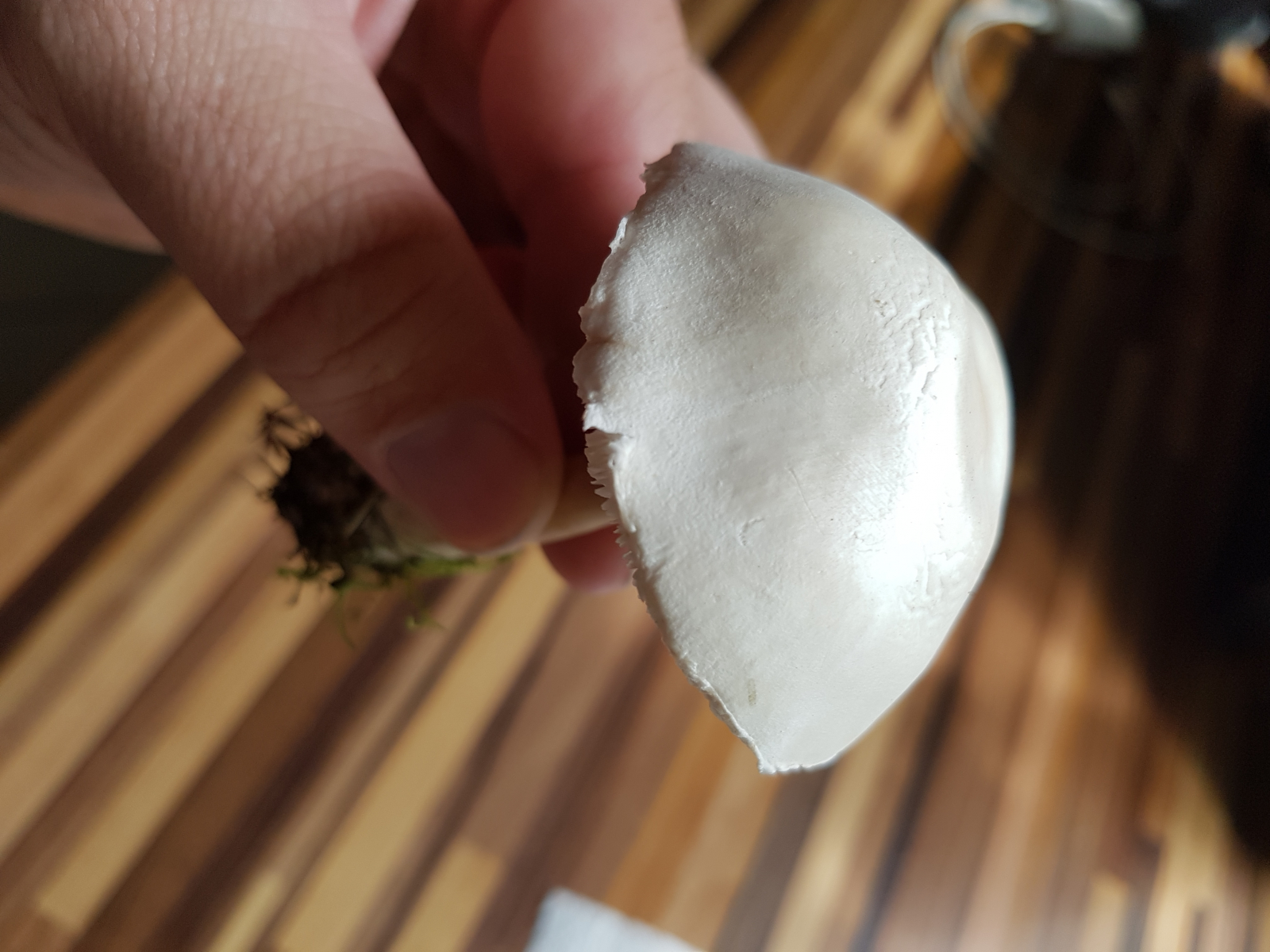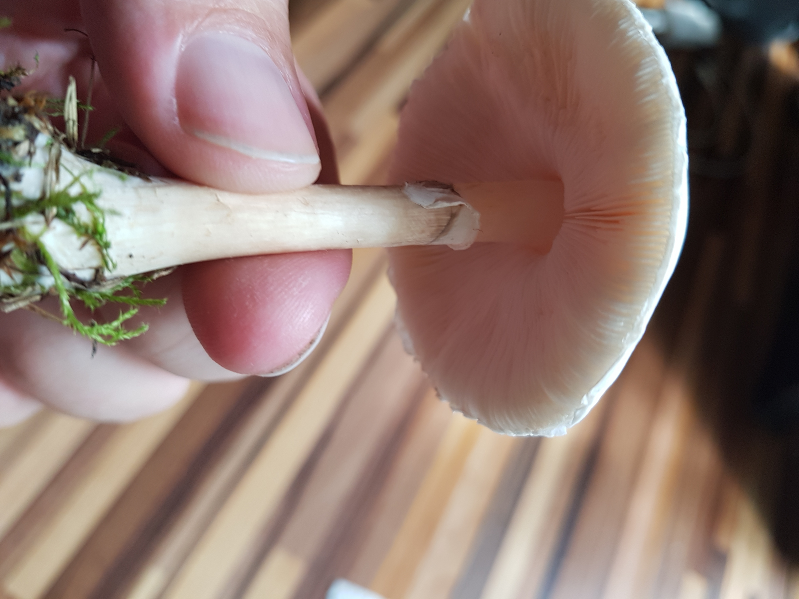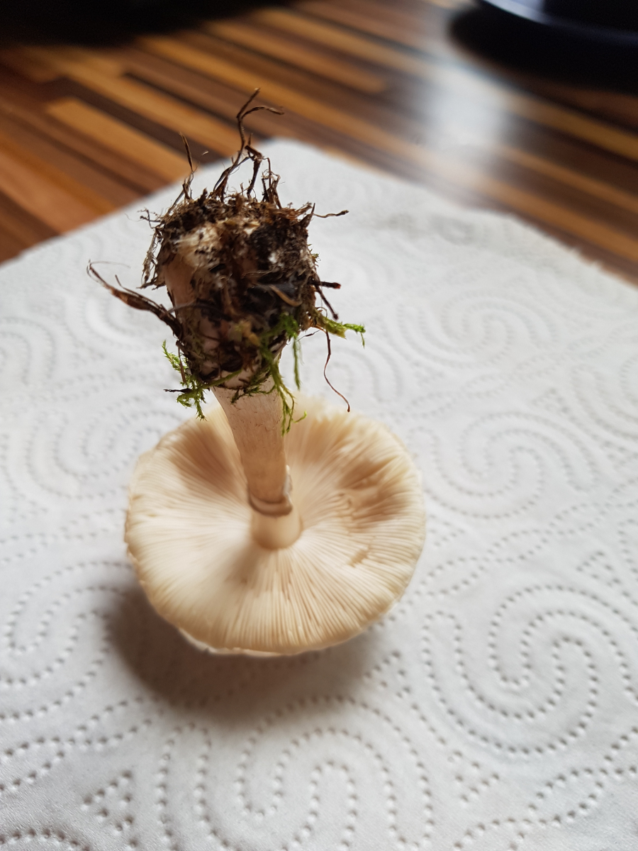 Ich habe heute morgen beim spazieren am wegesrand diesen Pilz gefunden. Es standen keine Bäume in unmittelbarer Nähe. Geruch war pilzig mit einer Note von Anis wobei Champignon ausgeschlossen ist aleine schon von der Farbe der Lamellen. Es sieht so aus als habe er eine Manschette. Der Stiel ist nur an der Knolle verdickt. Vielleicht hat jemand eine Idee