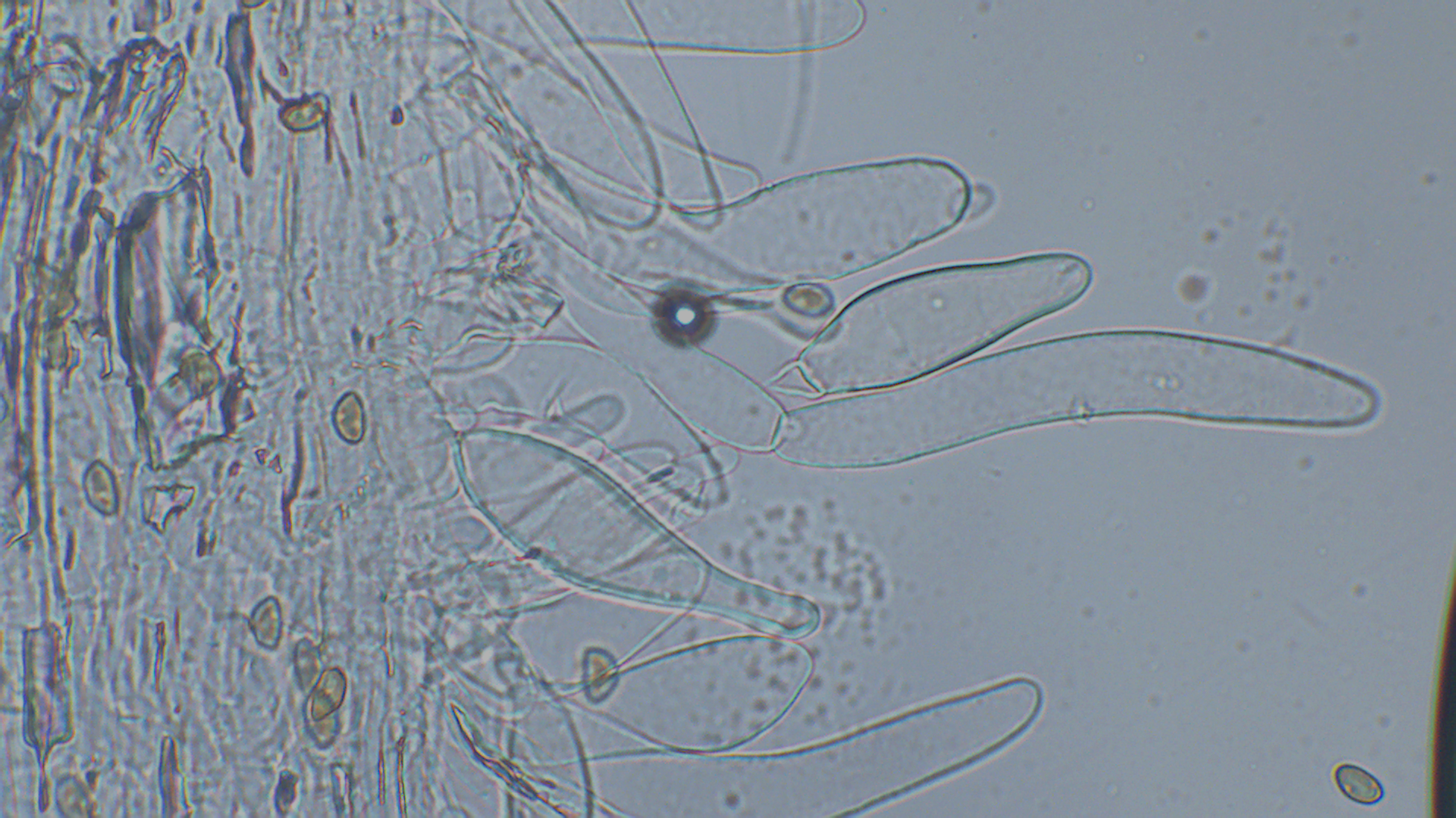 • Guten Morgen, Matthias, nein, das ist sicher nicht griseolilacina: Davon mal abgesehen, dass, wie du schon sagst, die Hutbbefaserung zu glatt ist, passt auch die Farbe nicht. Außerdem ist Inocybe griseovelata auch dadurch charakterisiert, dass sie neben anderen auch immer kopfige oder beinahe kopfige Zystiden hat, wie ich sie hier unten zeige.