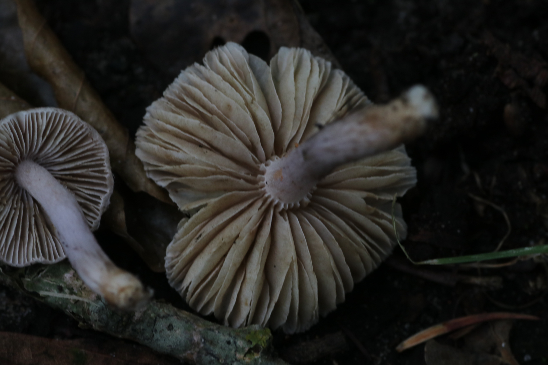 wie angedroht, kommt hier der zweite Risspilz von gestern, bei dem ich meine, dass es Inocybe griseolilacina sein müsste. Auf Dittes Seite sieht man allerdings Fruchtkörper, die insgesamt schuppiger und filziger als meine wirken, weshalb ich mit meiner Bestimmung nicht sicher bin.