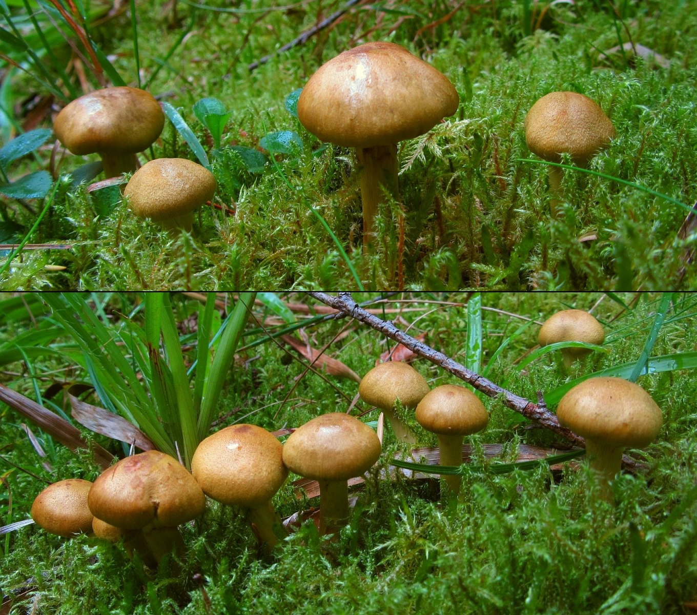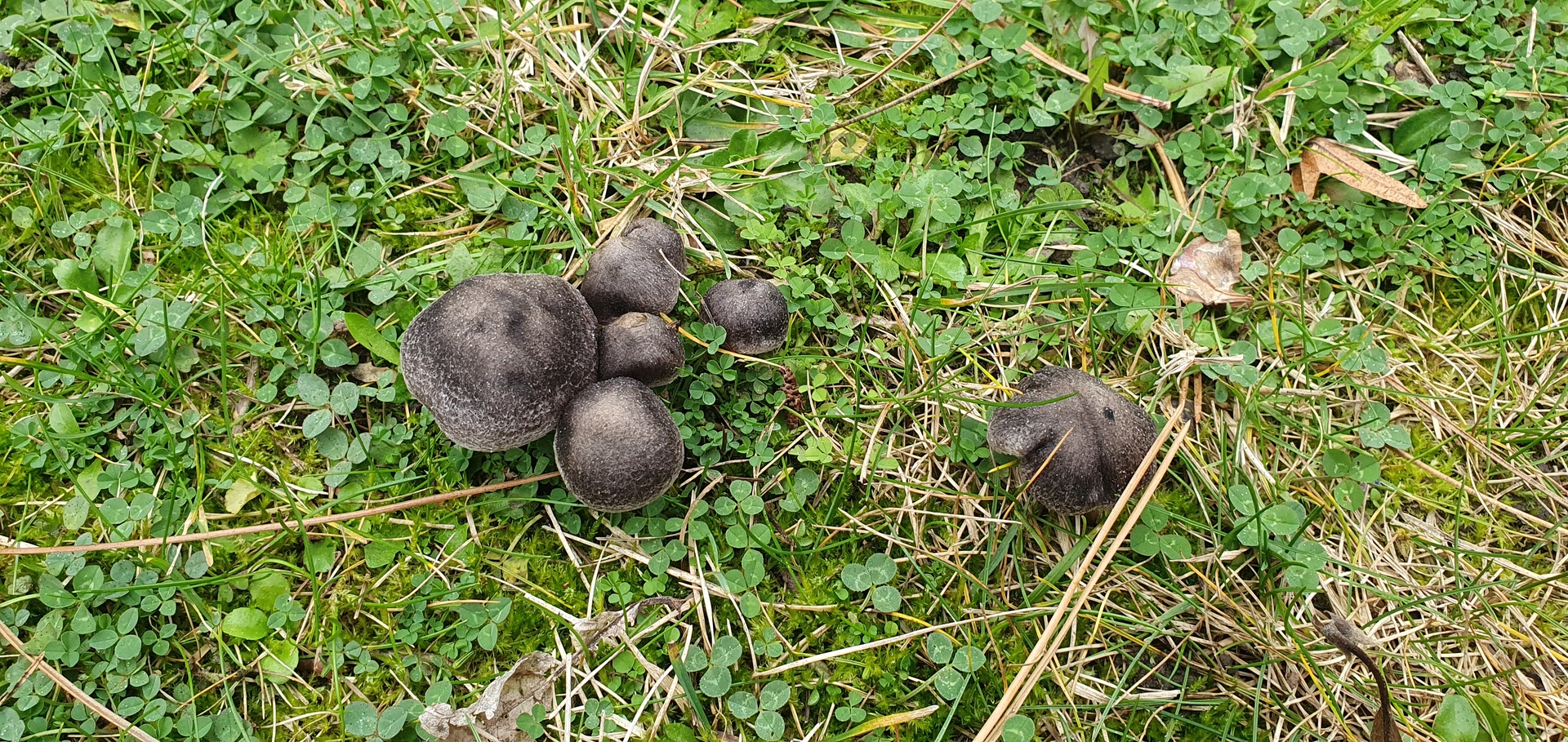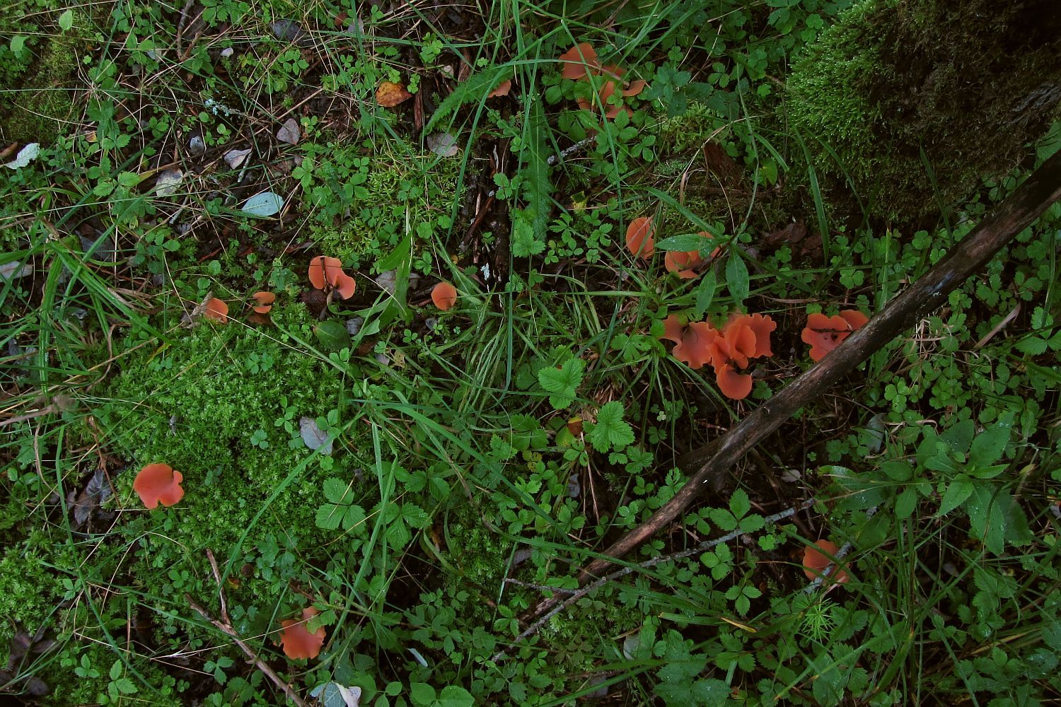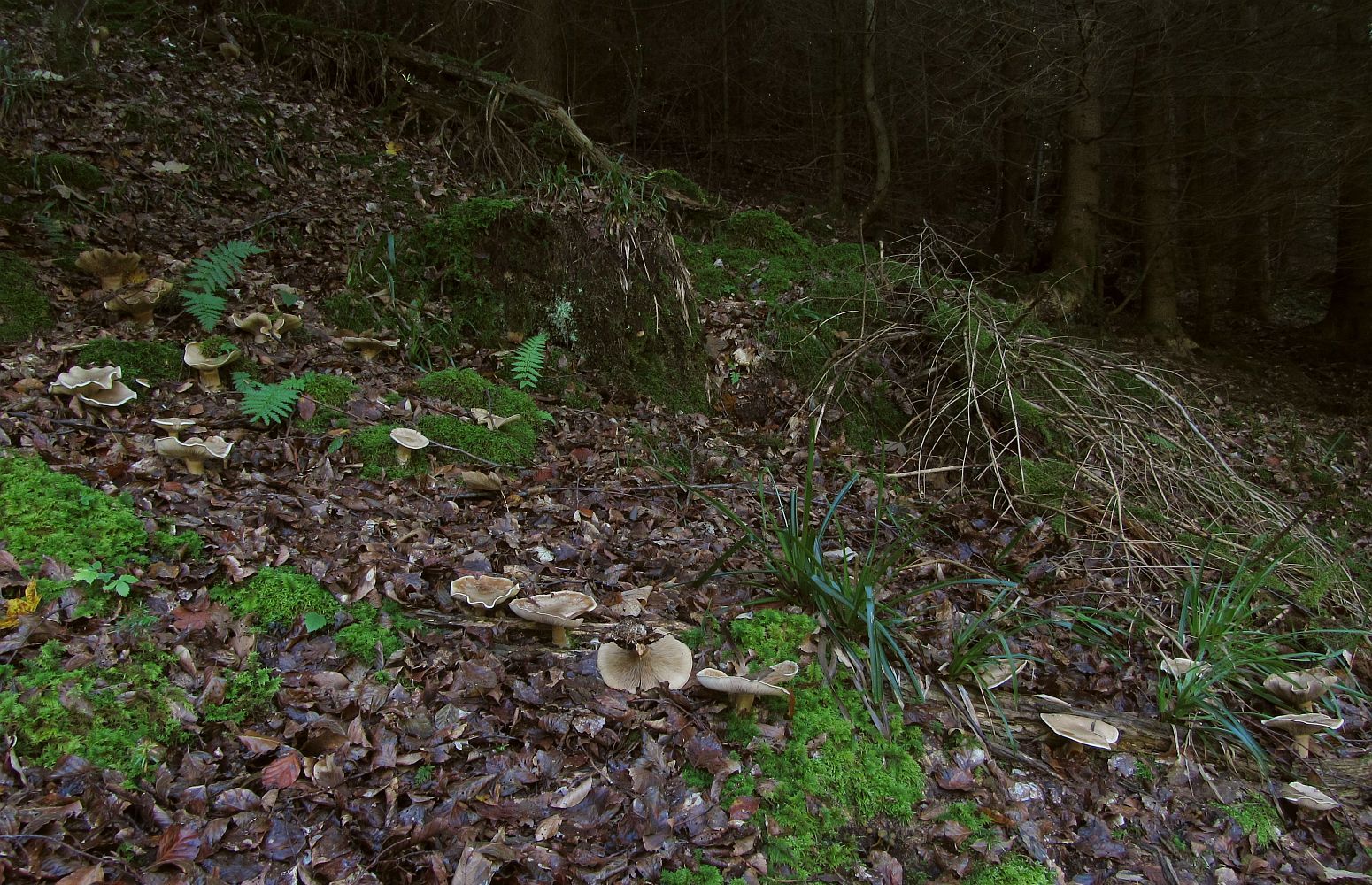 ...zahlreich an einer Wegböschung, da stand ich mittenmang in den Fruchtkörpern, ohne die anfangs gesehen zu haben, weil: Im nächsten Bild wäre dann die Stelle zu sehen.