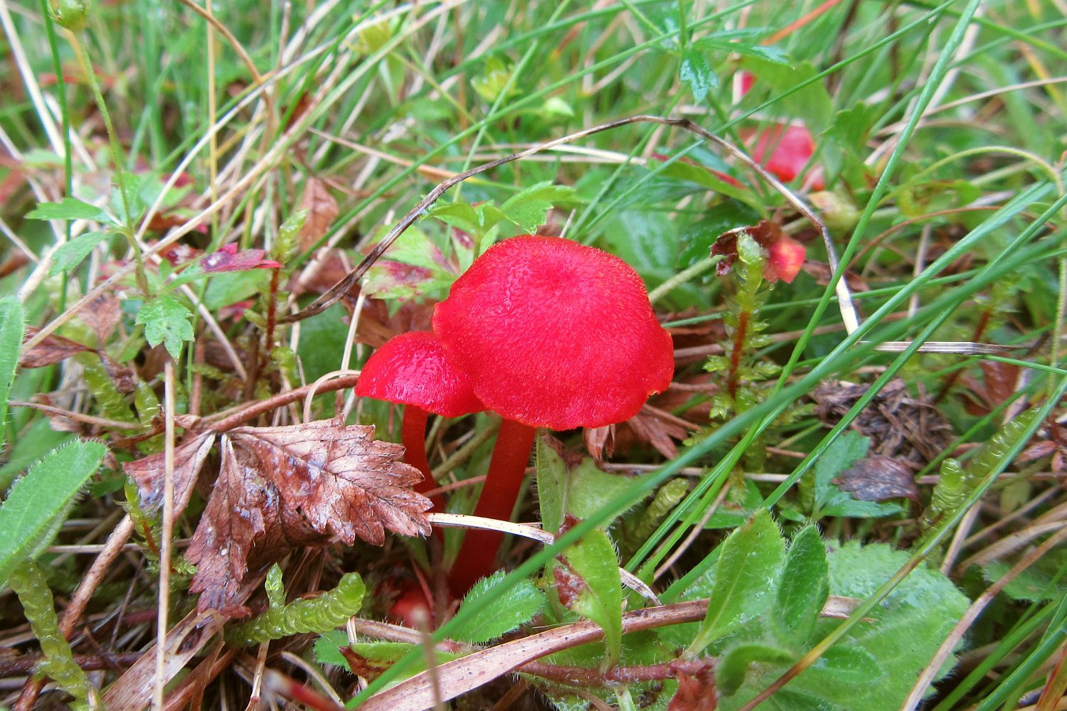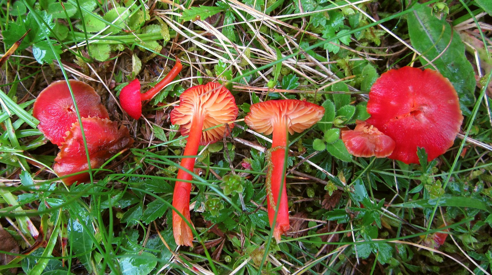 Mit der olivgrauen KOH - Reaktion auf der Huthaut komme ich eigentlich zu Cystoderma subvinaceum. Das kann aber nicht sein, wegen den inamyloiden Sporen, und weil die Fruchtkörper nicht an Holz wuchsen, sondern auf der selben kleinen Magerwiese wie die Knobisaftlinge. Allerdings hätte ich mir C. superbum nochmal etwas anders vorgestellt; größer und röter, aber dennoch scheint C. superbum die einzige vernünftige Bestimmung zu sein, oder?