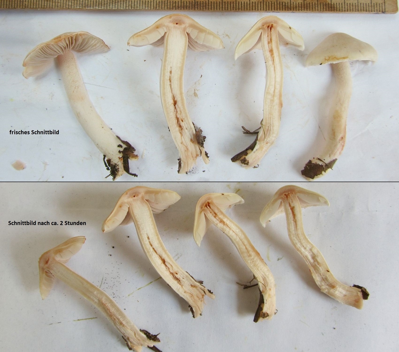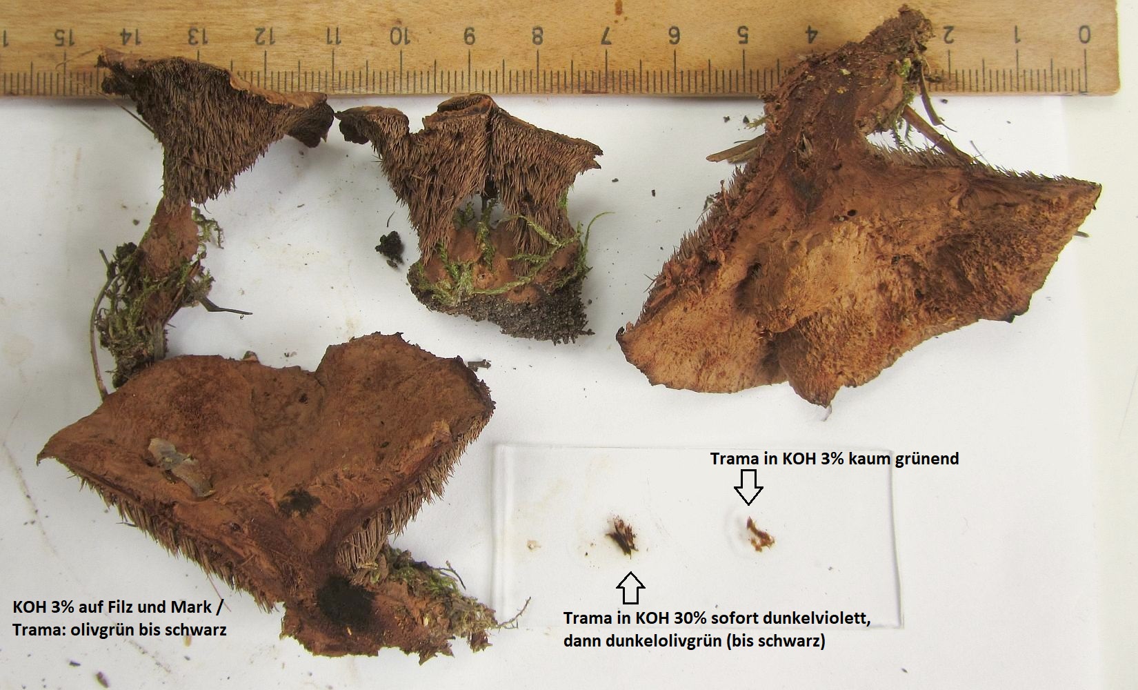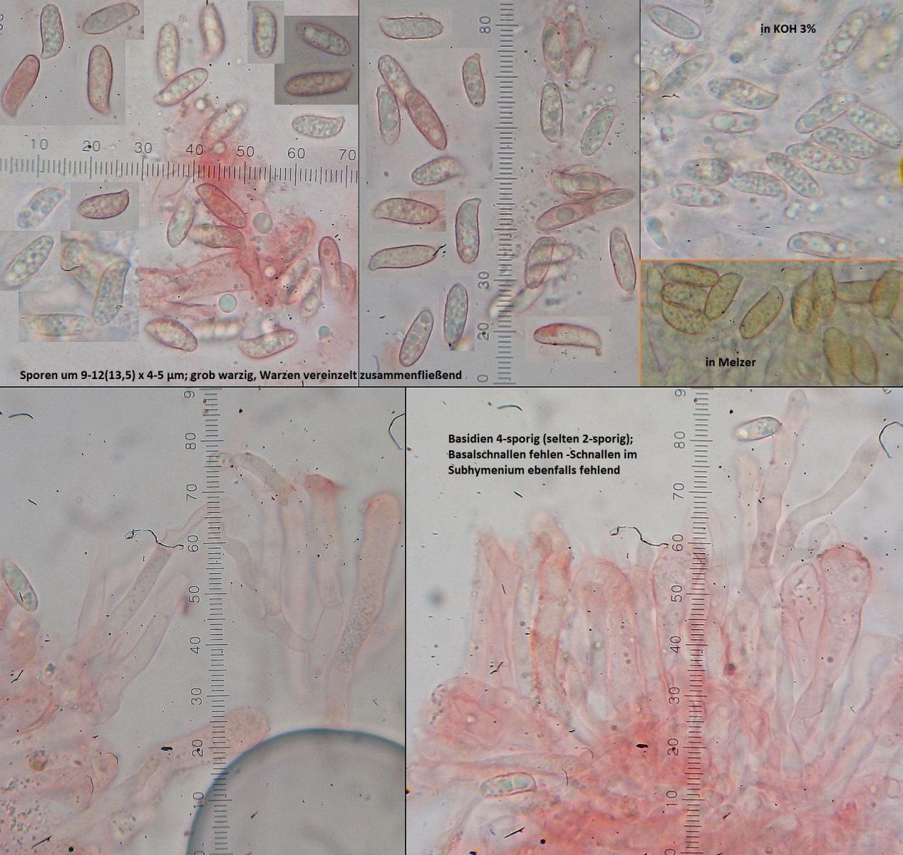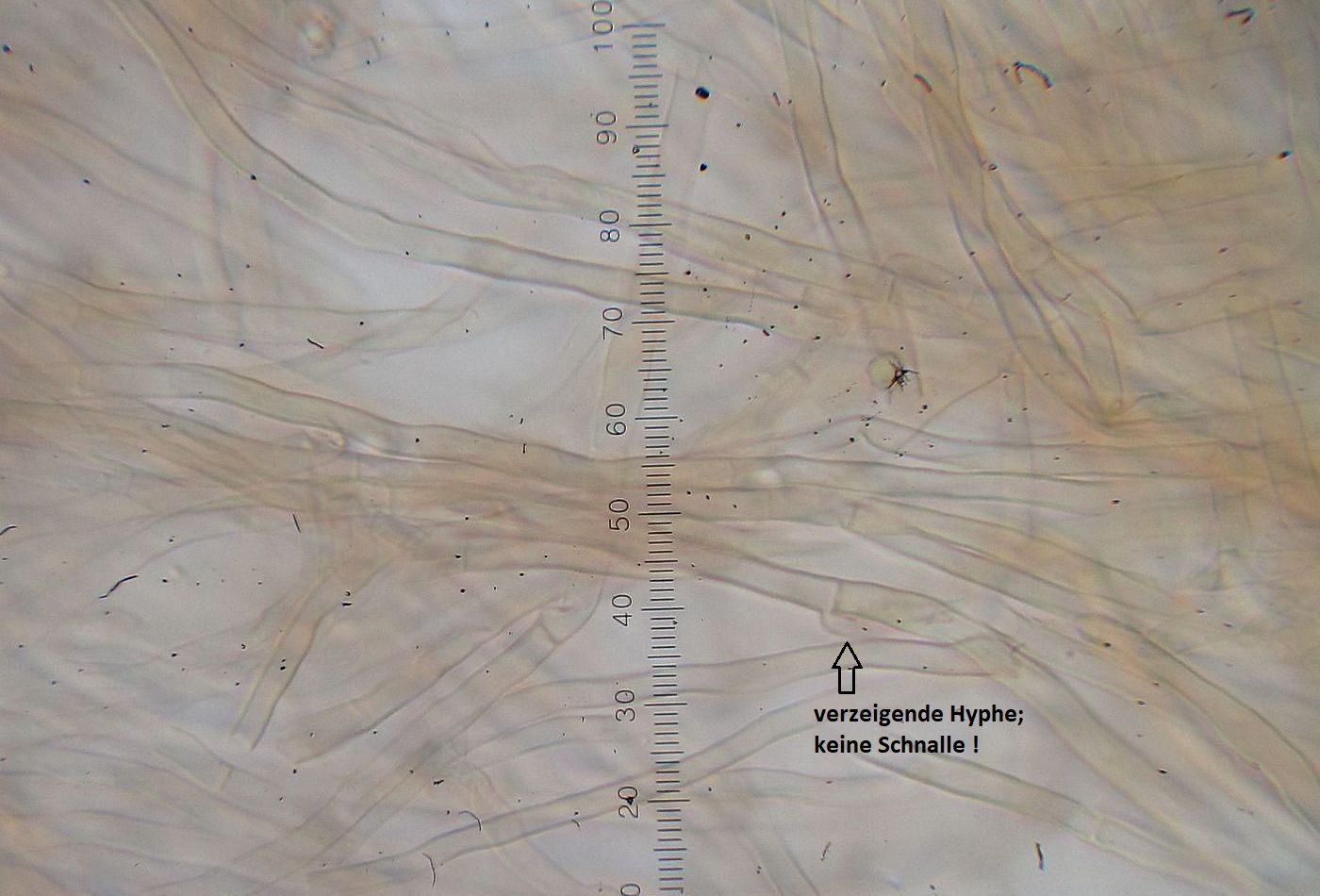 ...die hellen, nahezu weißen Fruchtkörper ließen zunächst an einen Schafporling denken - was ein weiterer Erstfund gewesen wäre. Aber Schnallen und Verfärbungsverhalten rückten das dann zurecht.